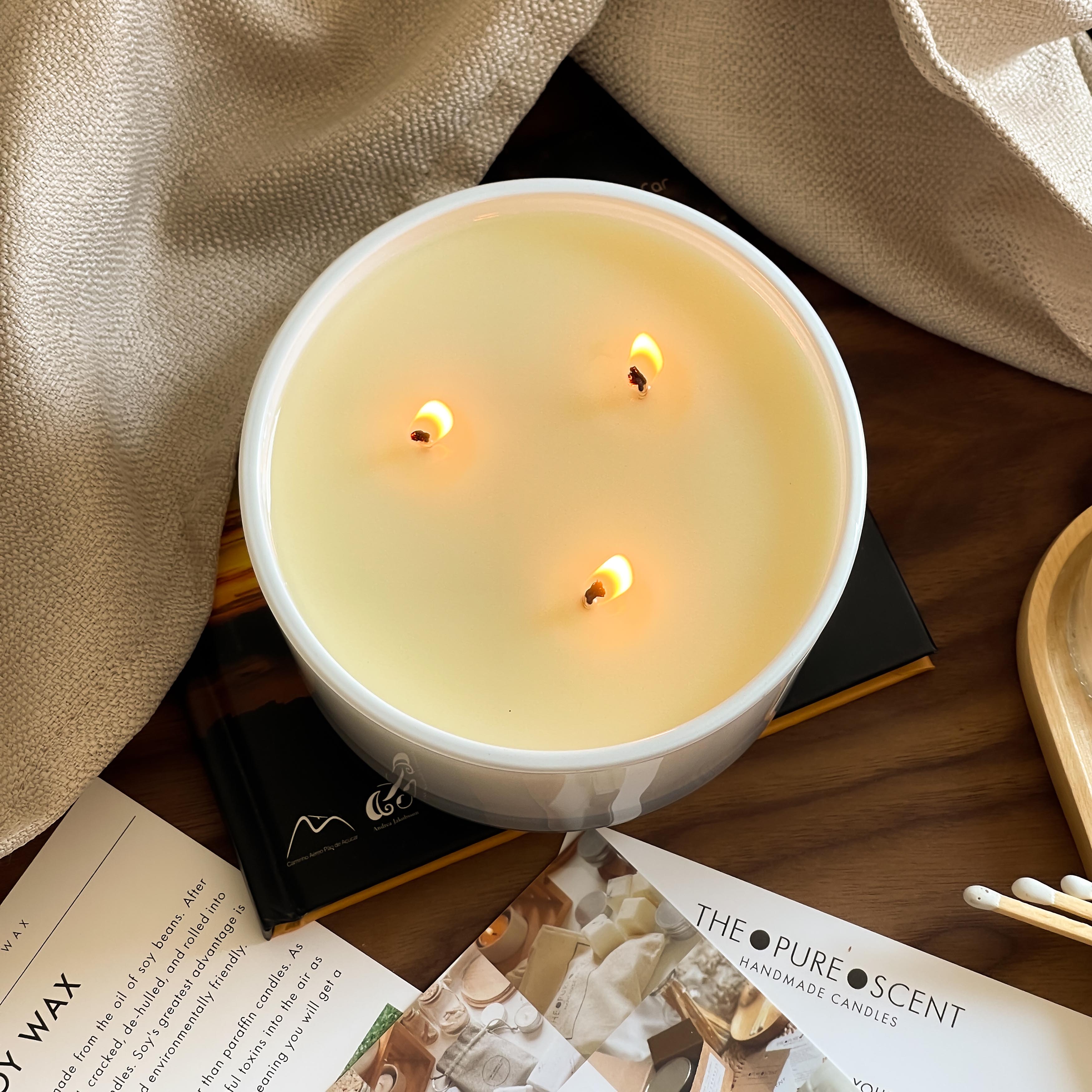 Transform your space with the warm glow and soothing aroma of our large 3-wick candle. Made with high-quality soy wax, this hand-poured candle provides a clean, even burn, filling your home with long-lasting fragrance.
