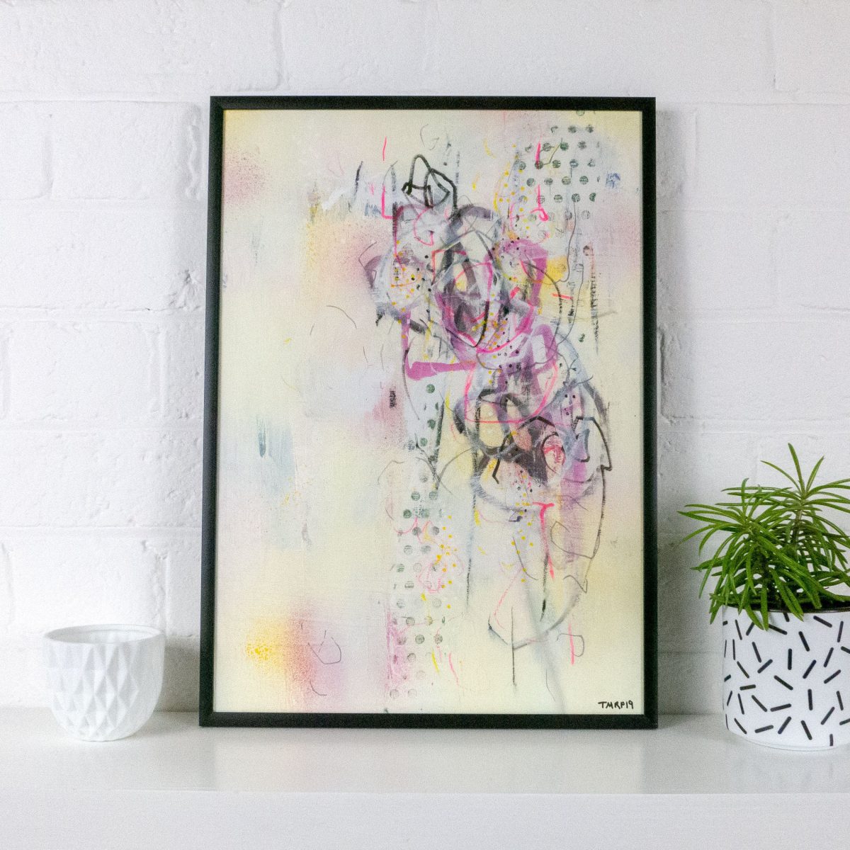 An original, contemporary, mixed media, abstract, artwork on paper by the artist Tanya Paget.