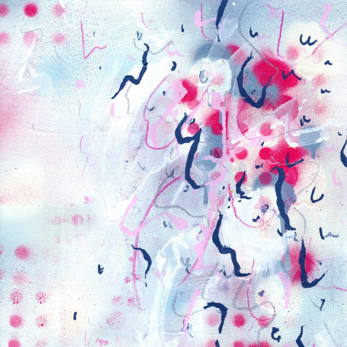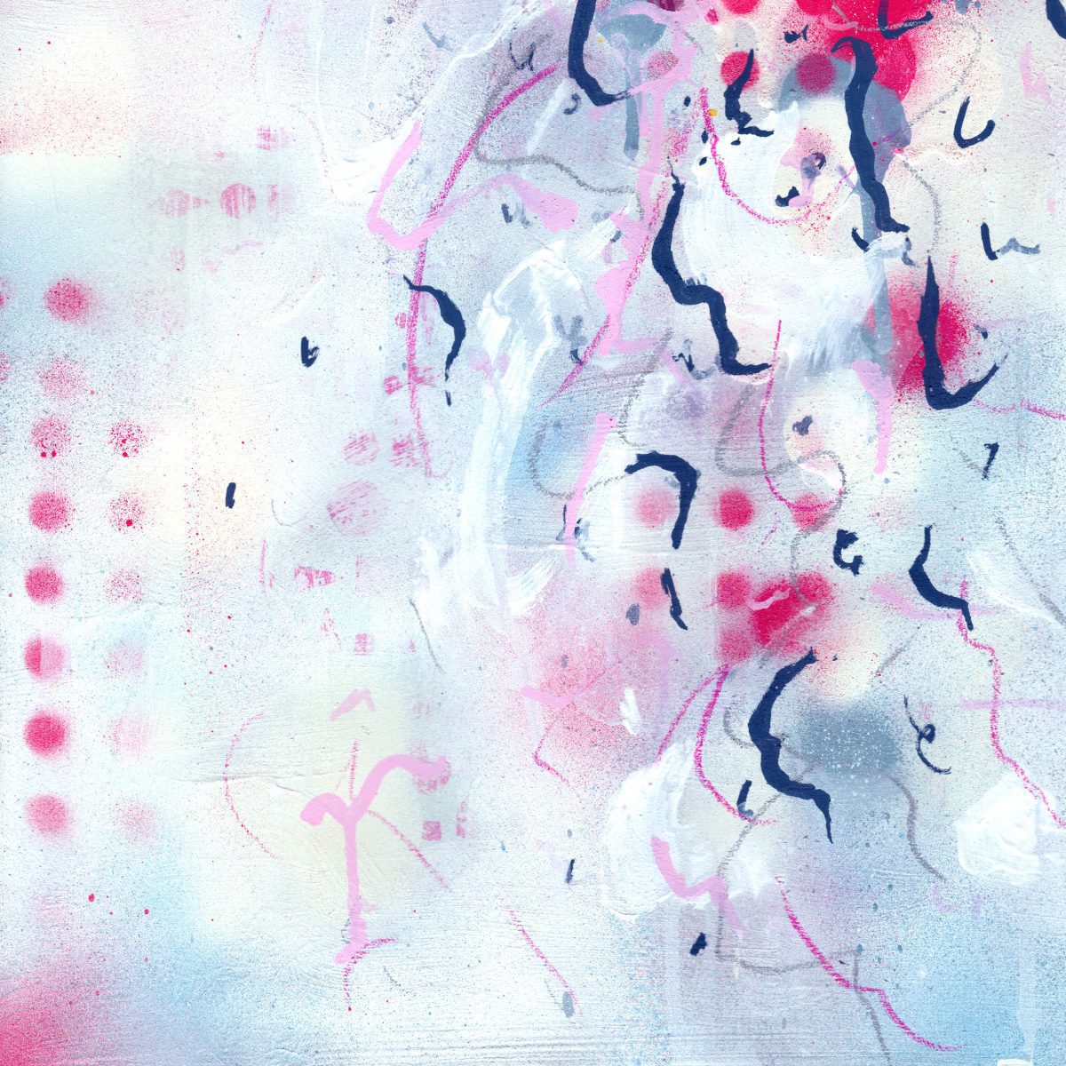 Media: This is a mixed media artwork on 167gsm printed paper and includes gesso, paint pen, graphite, coloured pencil, pastel, print transfers, thinners and spray paint.