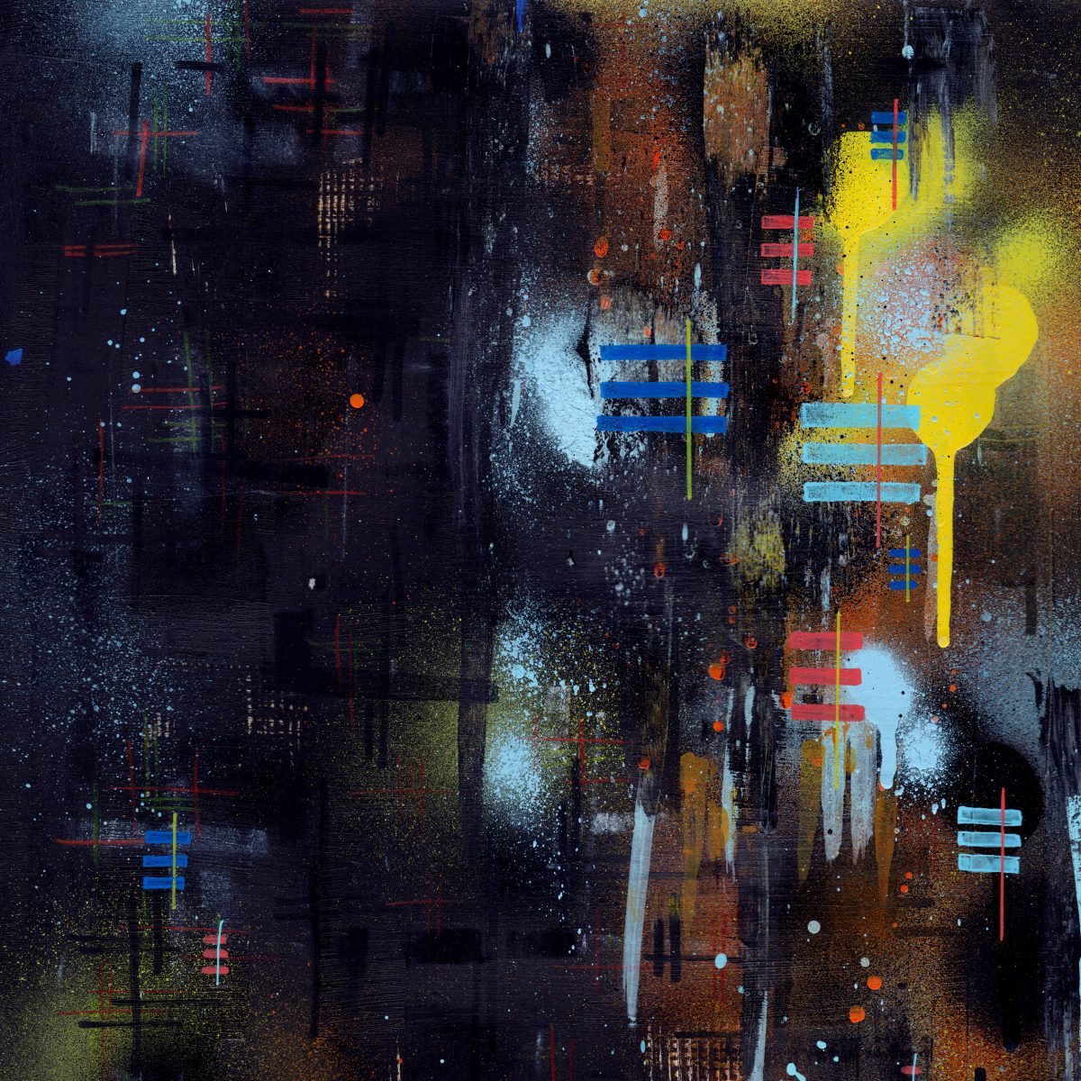 This piece is titled ‘Yinka’ and is an A3 framed original artwork. The style of the work could be described as contemporary urban or street influenced art incorporating graphic elements, abstract layered marks and spray paint.