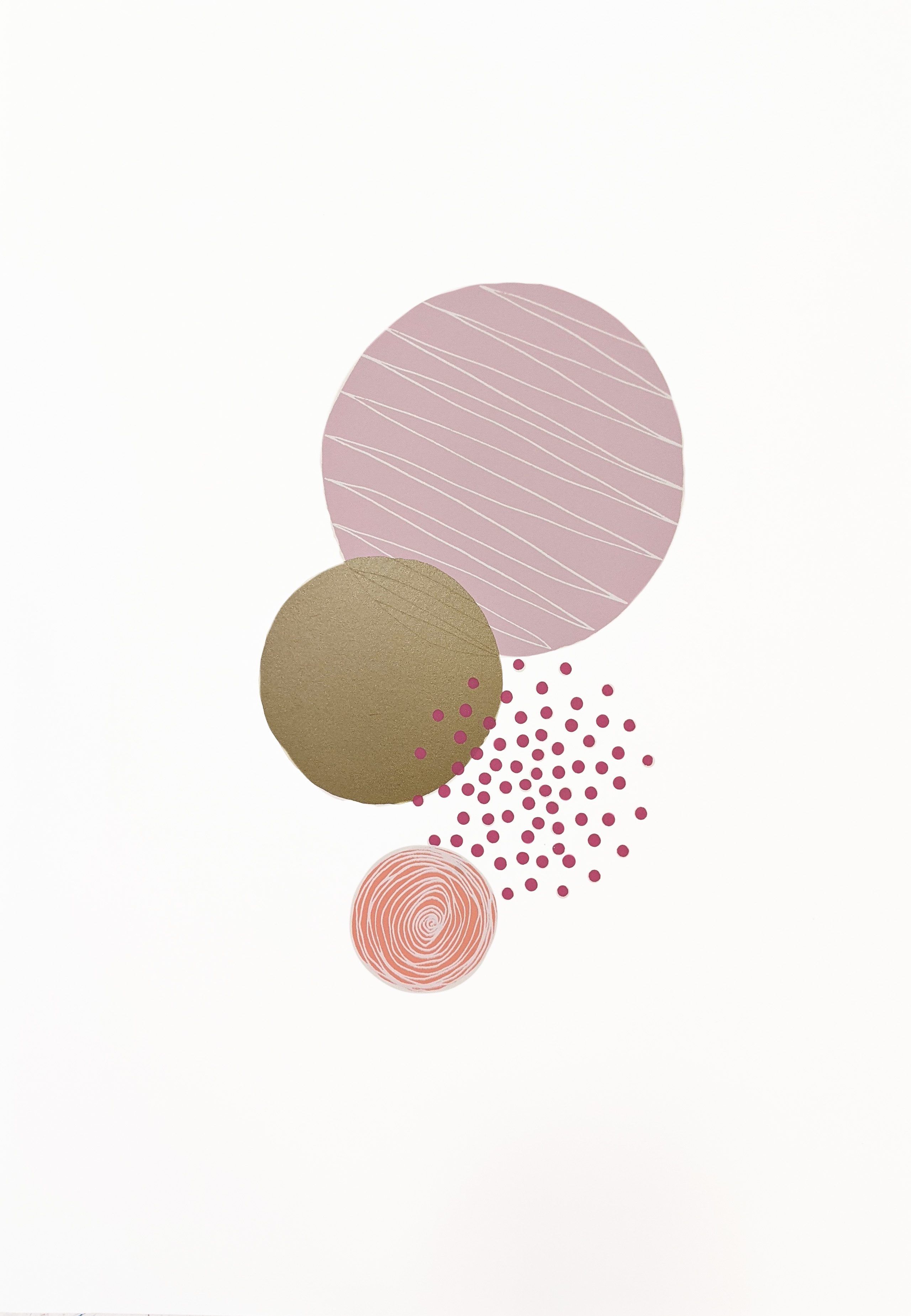 6 Layers in Pinks, Peach, White and Gold inks
