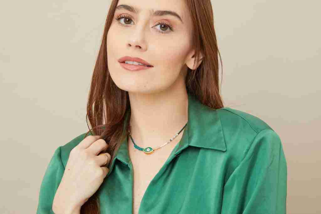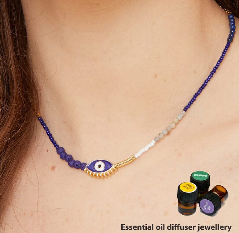 Art Deco Necklace – Adlee – Essential Oil Diffuser Necklace with Enamel Evil Eye