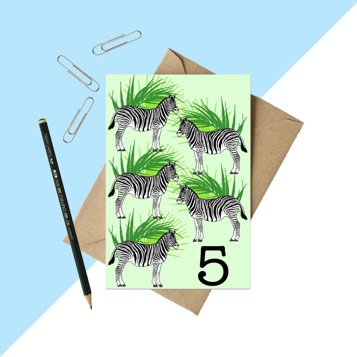 Age 5 Zebra Birthday card – year 5 card – kids card – childrens card – fifth birthday – childrens age card – jungle card – unisex age card – girls, boys birthday card – jungle animal