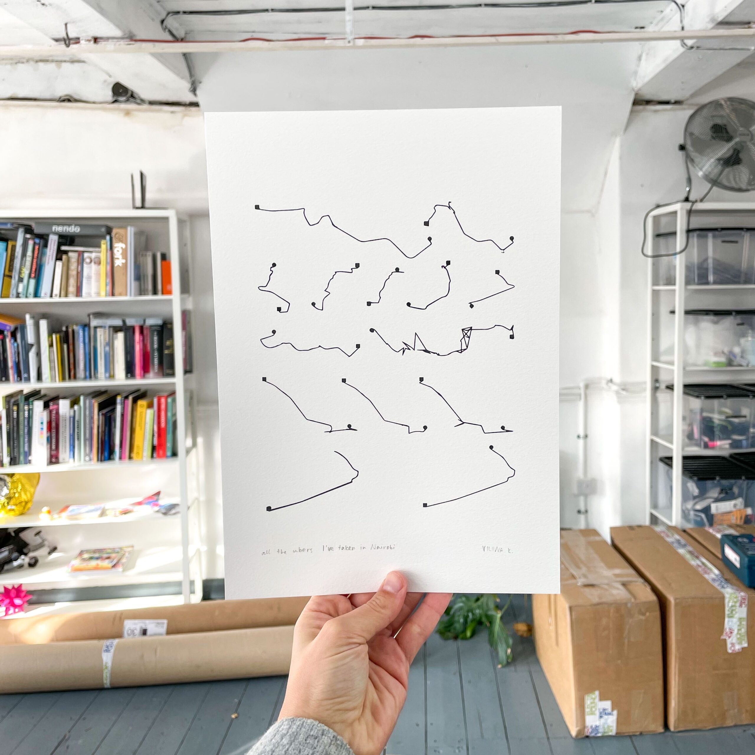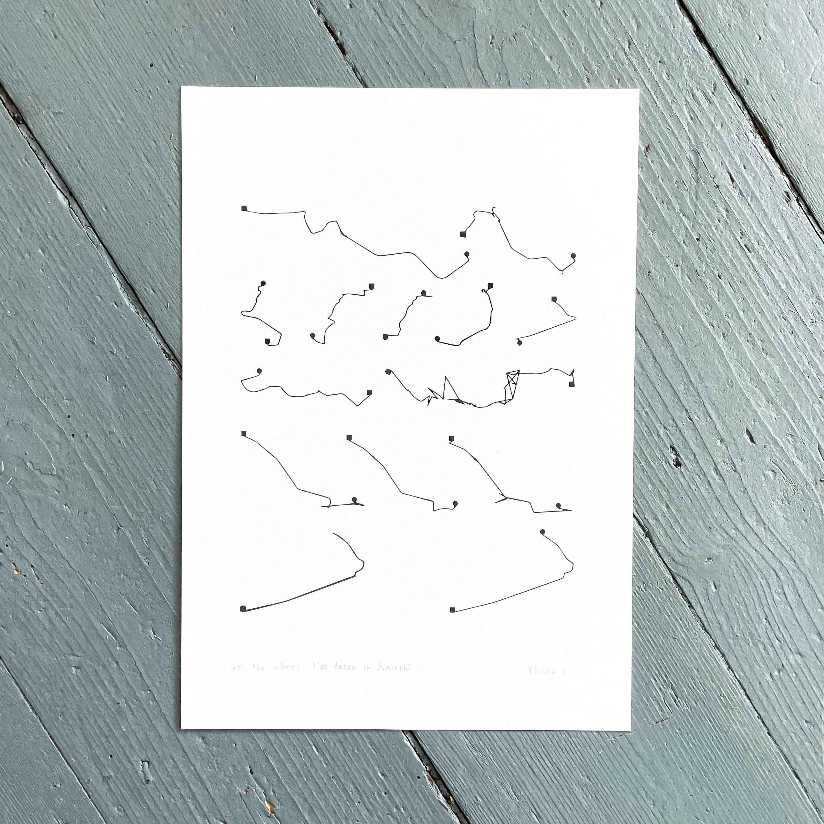 This A4 size Giclée print describes the Uber rides I took in Nairobi as shown in the app.