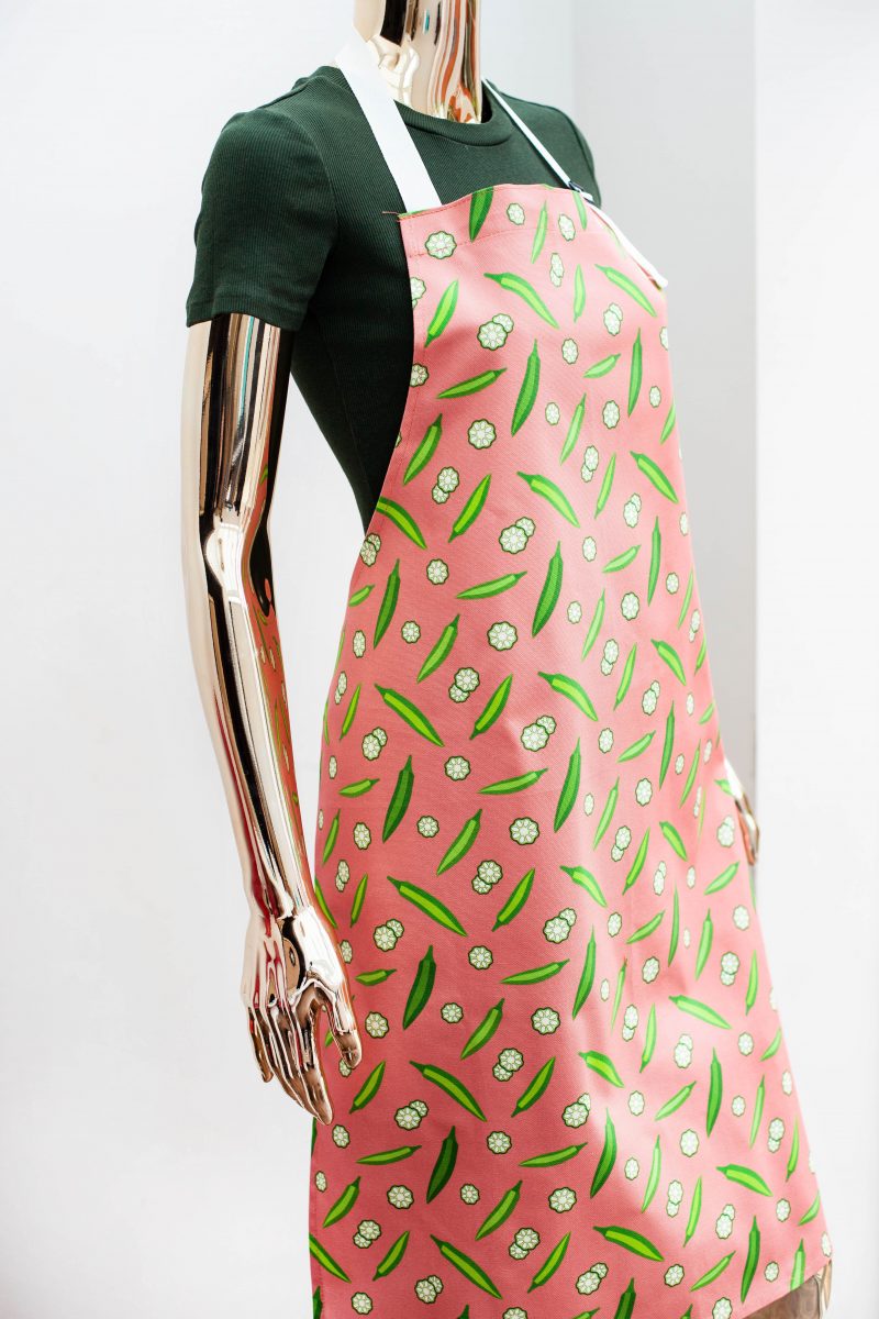 Apron with okra pattern in pink colour