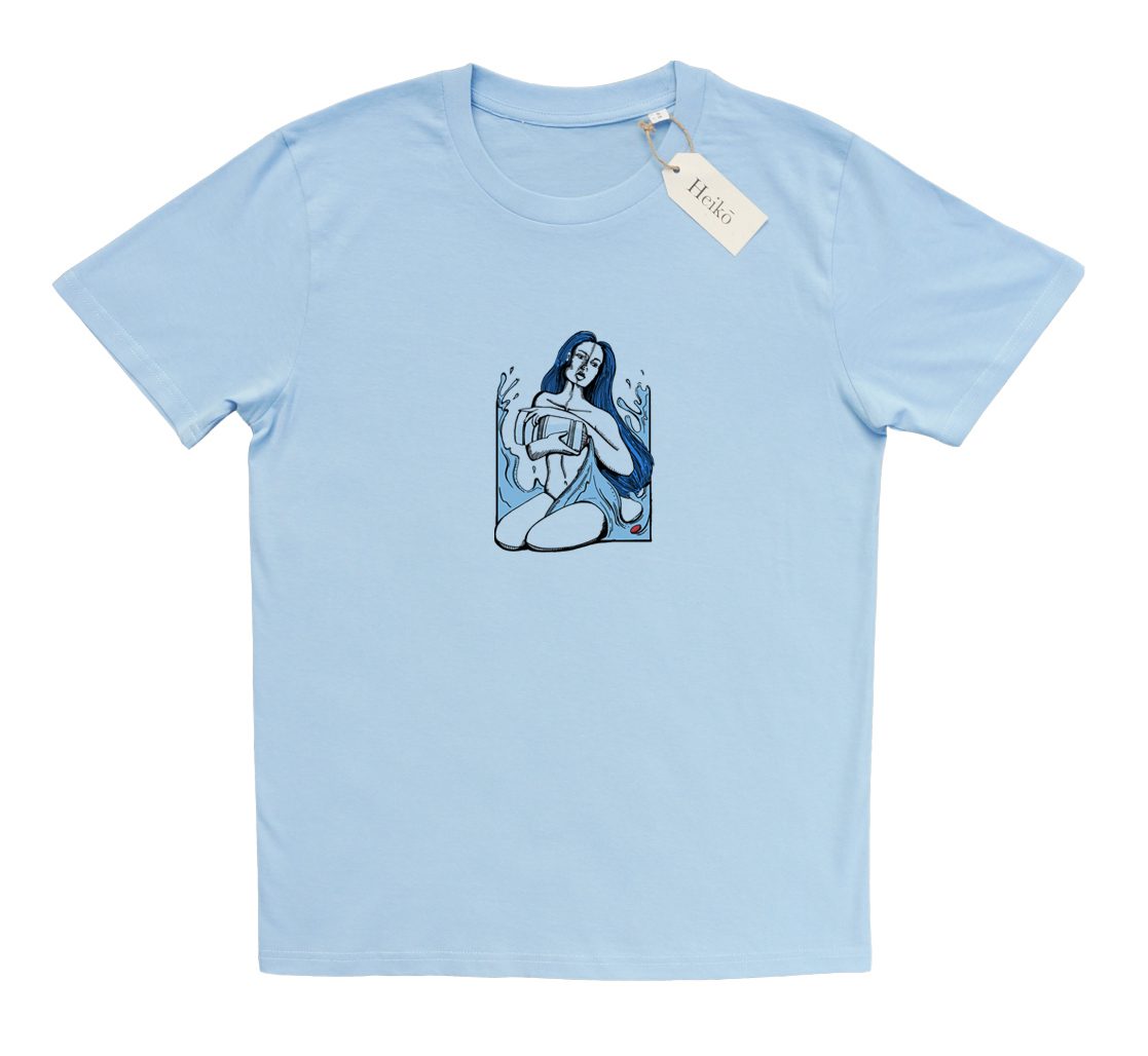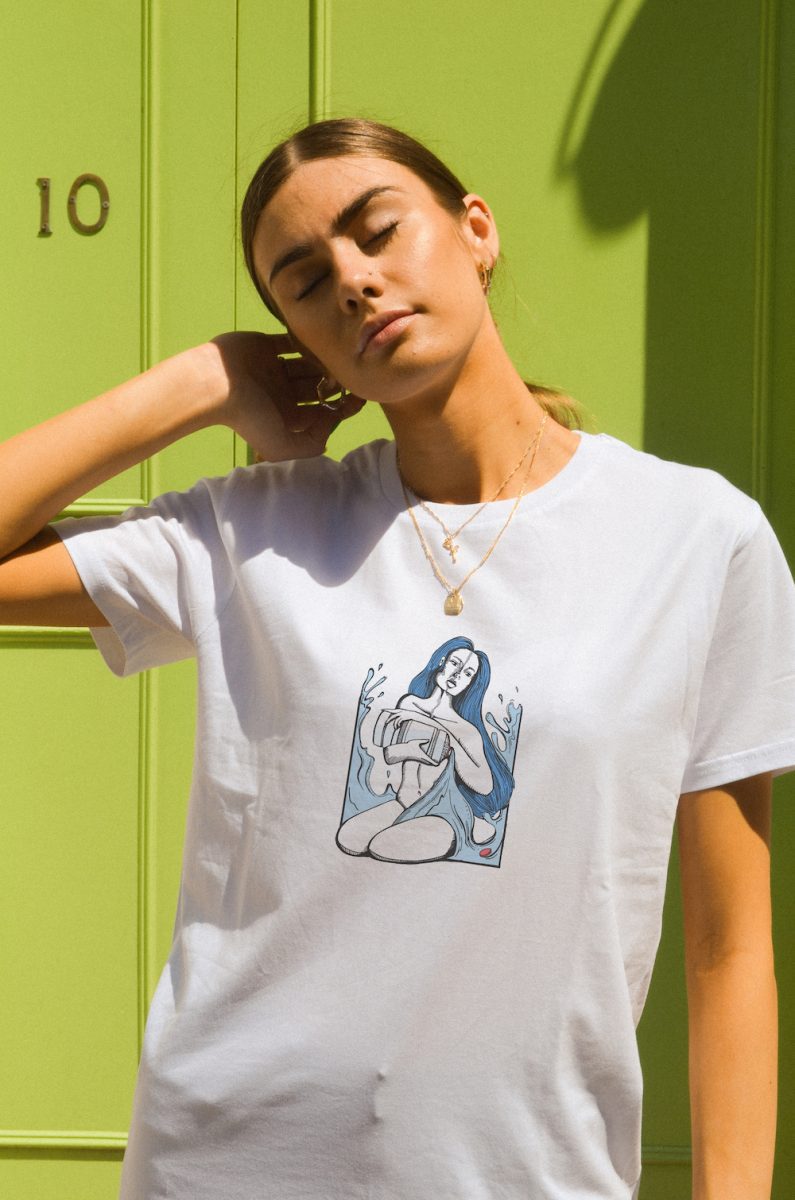Raise awareness whilst looking good in our gorgeous Aquarius tee. This unique design depicts a mythical water goddess, representative of the zodiac sign ‘Aquarius’, cradling a plastic bottle. It is symbolic of the heart-breaking damage we are causing to our seas through plastic pollution. Top tip: this tee makes the perfect thoughtful gift for Aquarius friends!