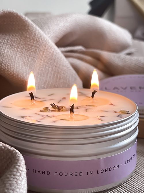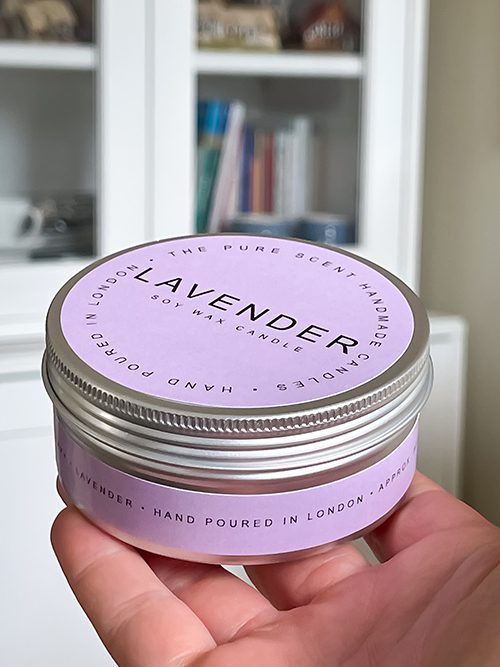 This candle holds 150g of pure and sustainably sourced soy wax combined with pure lavender essential oil. The aluminium tin can be recycled or reused.