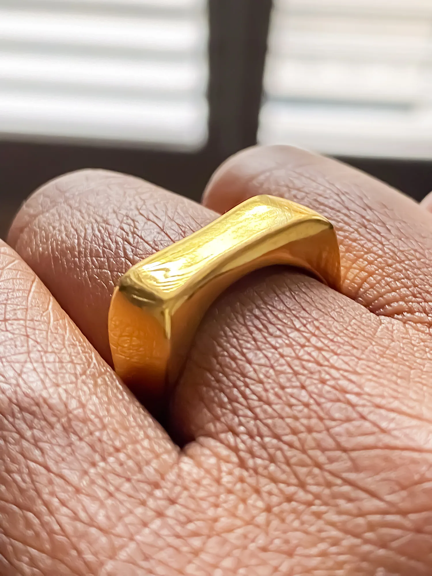 Every ring is carefully shaped by hand, meaning no two are exactly alike. The natural variations in form make each one a true original, offering you a piece of jewellery as individual as you are. Its lightweight feel and smooth finish ensure comfortable wear throughout the day, while the delicate band and refined proportions make it ideal for layering.