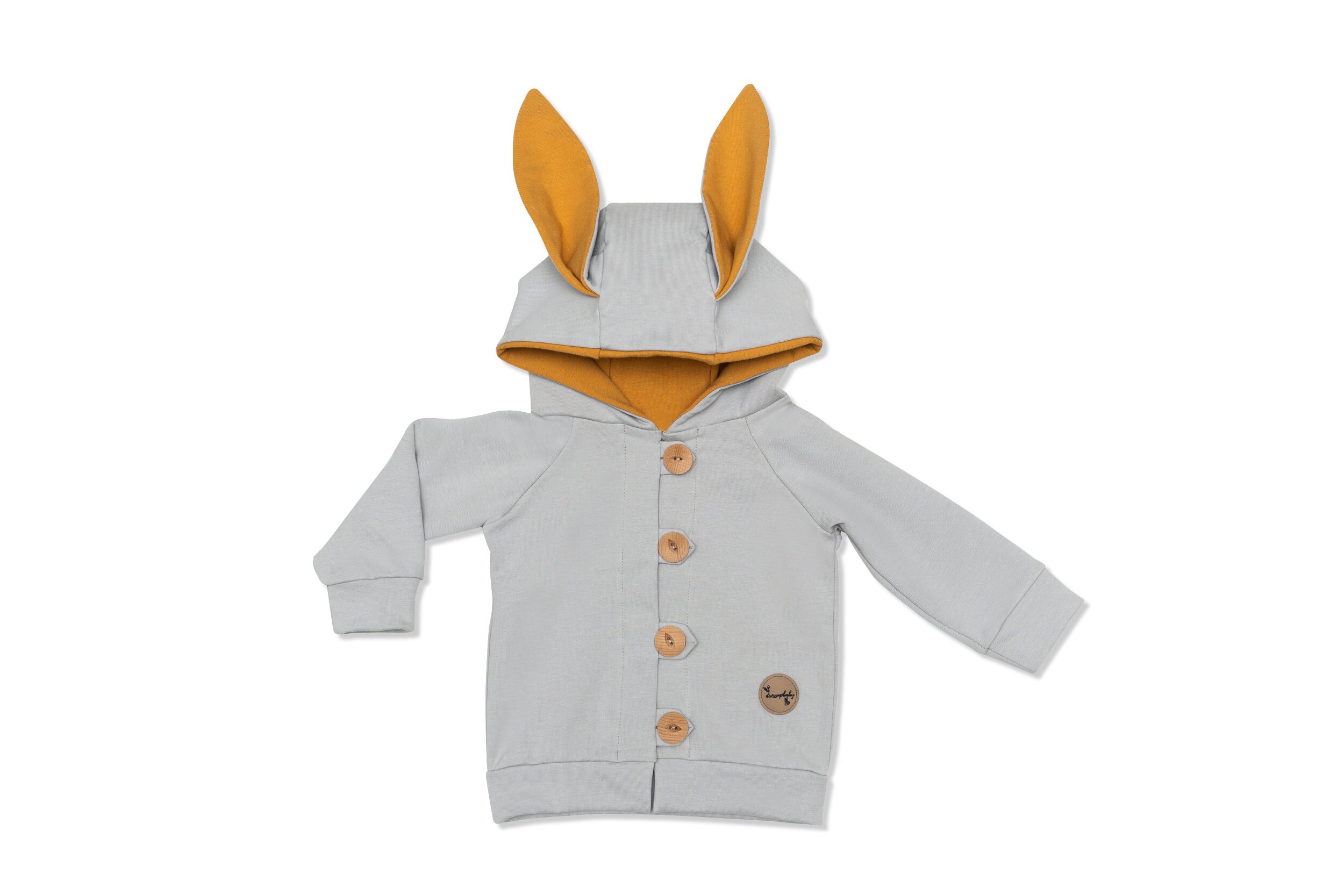Hop little bunny! This handmade hoodie stands out from the crowd with quirky design and retro colour. Cute bunny ears and beautiful wooden buttons will change an ordinary day into a dress-up party. The piece is made from soft, comfortable, easy to wear fabric. Achieve the perfect look by pairing with our burgundy suspender bottoms!