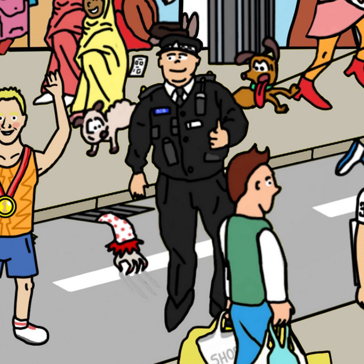 There are plenty of local characters too such as Ainsley Harriot, the local Bobby on the Beat, mr key maker in the Tube Station, the Super Mum in Waitrose with her Bluetooth call, baby and weekly shopping, the Sainsbury’s Security Guard, the Big Issue seller and a TFL worker.