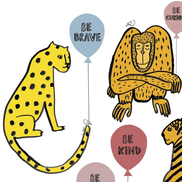 Inspiring Be Kind Be Brave Animal Balloon Print for Kids