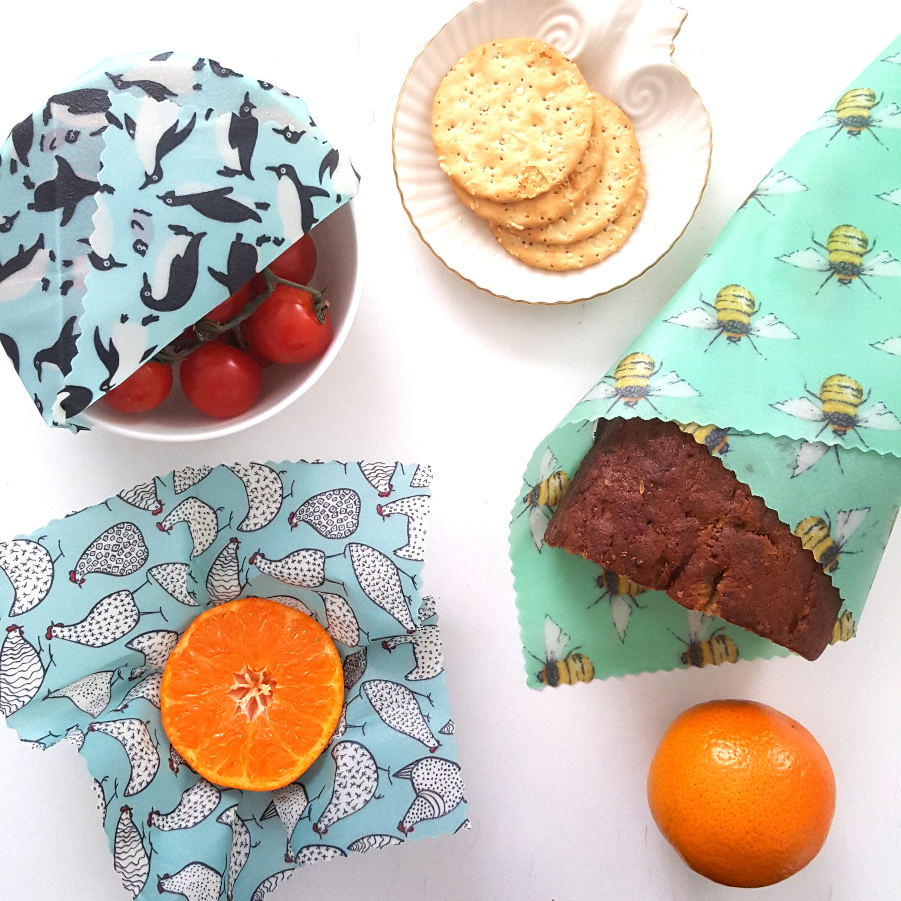 Use eco-friendly reusable beeswax wraps to save leftovers, cover bowls, keep cheeses fresh, wrap sandwiches, half an onion, apple, etc, even keep your toothbrush travel-ready and seal the tops of suncream and moisturisers for spill-free packing! They also work in the freezer.