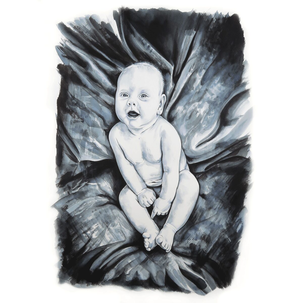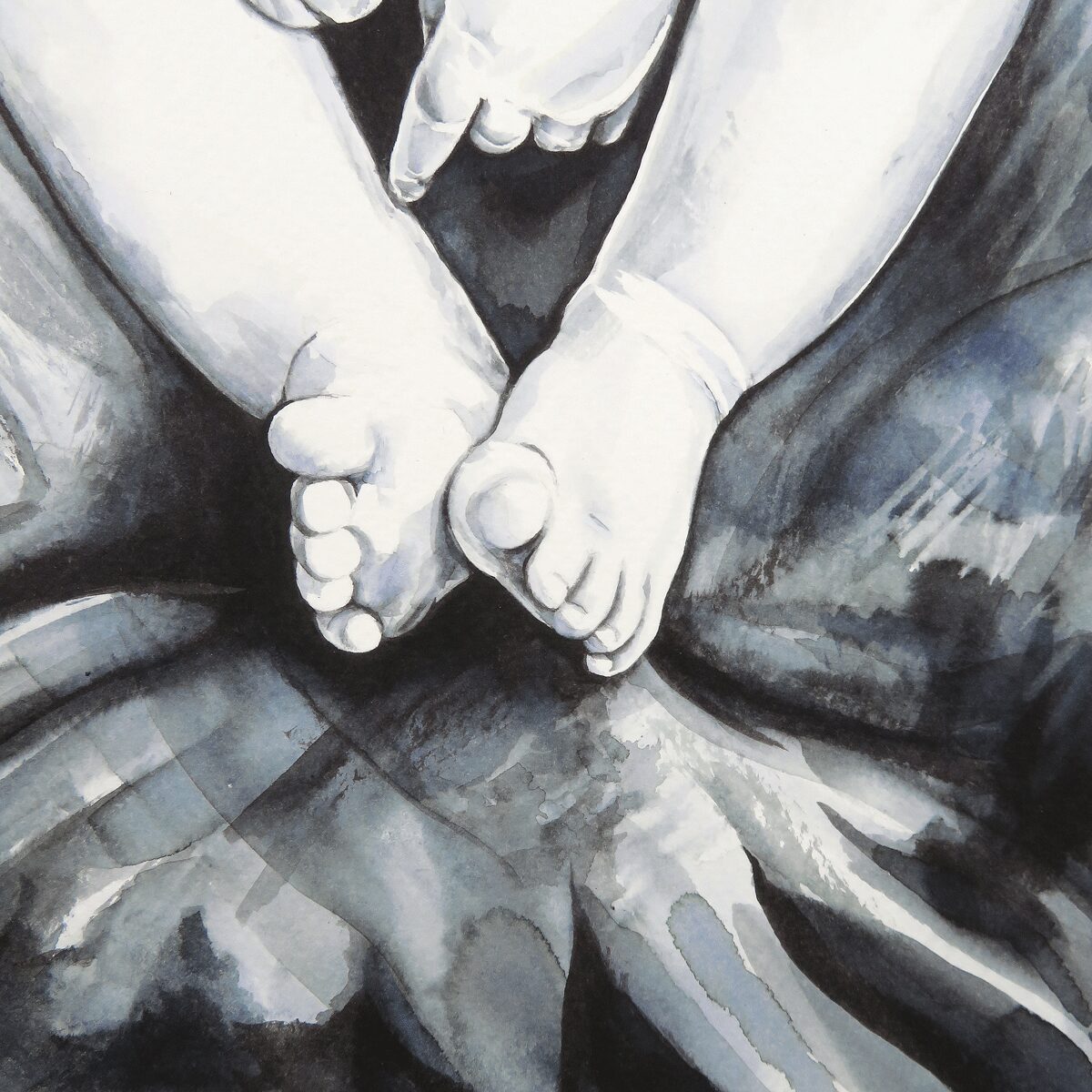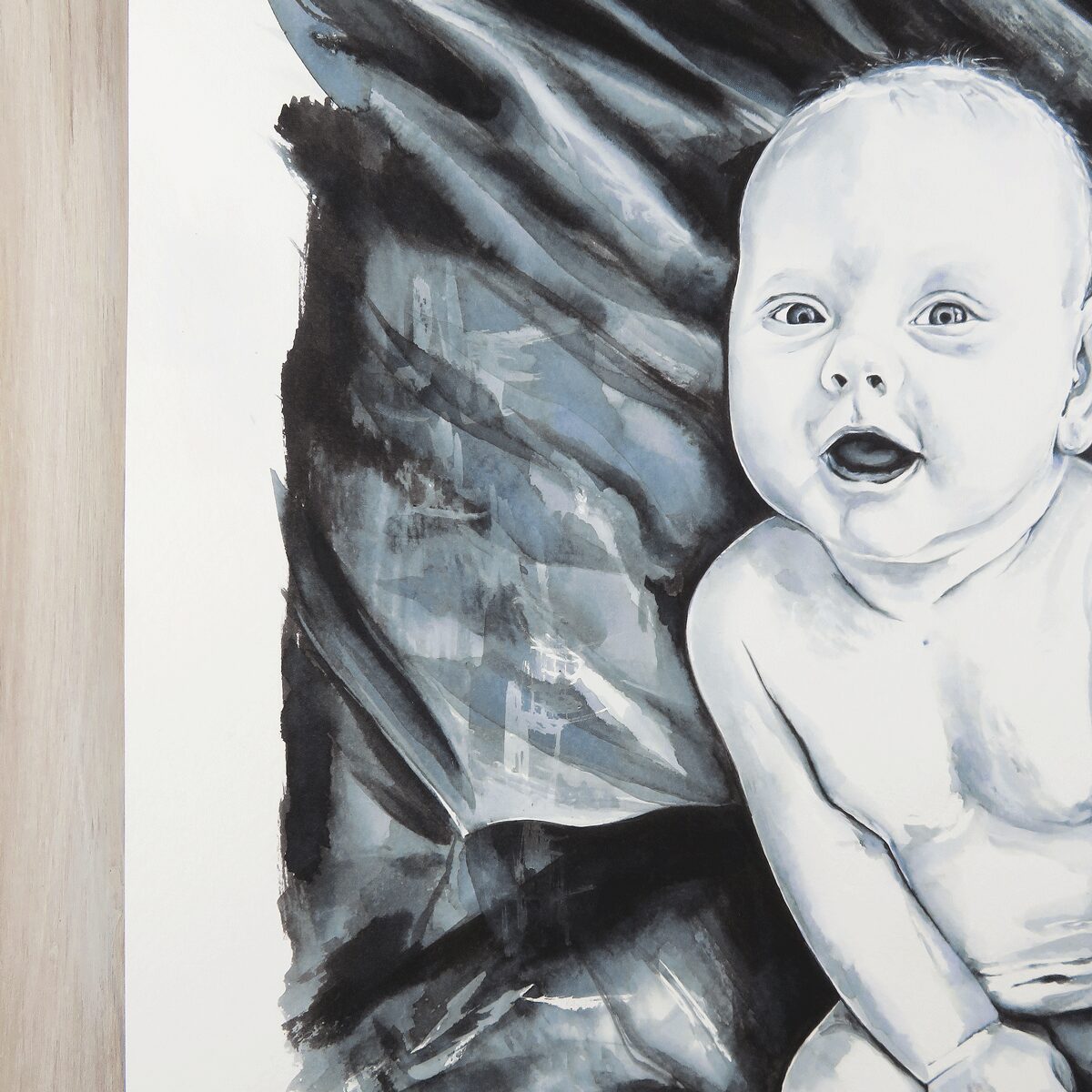The mixture of subtle watery washes, alongside deep, unsaturated strokes creates beautiful layering & depth – Black is actually the only watercolour used, the white is purely the paper shining through – this gives it a sophisticated feel.