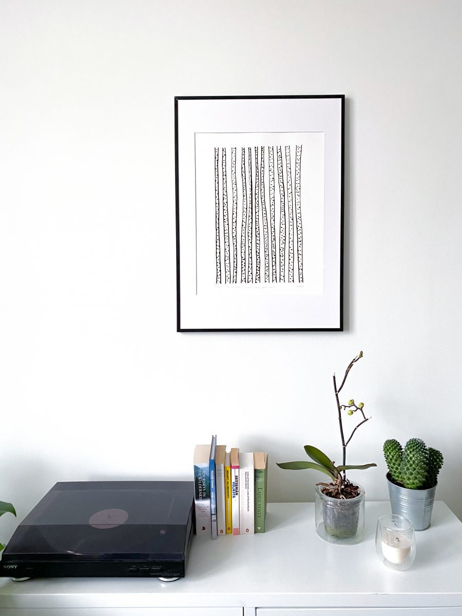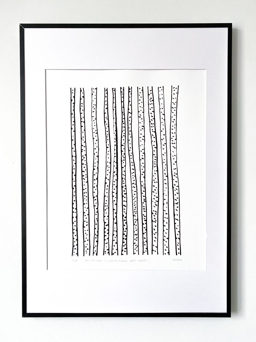 These prints are a limited edition of 100 acrylic stencil paintings. Each print is handmade and signed by me. Please note the frame is not included in the price.