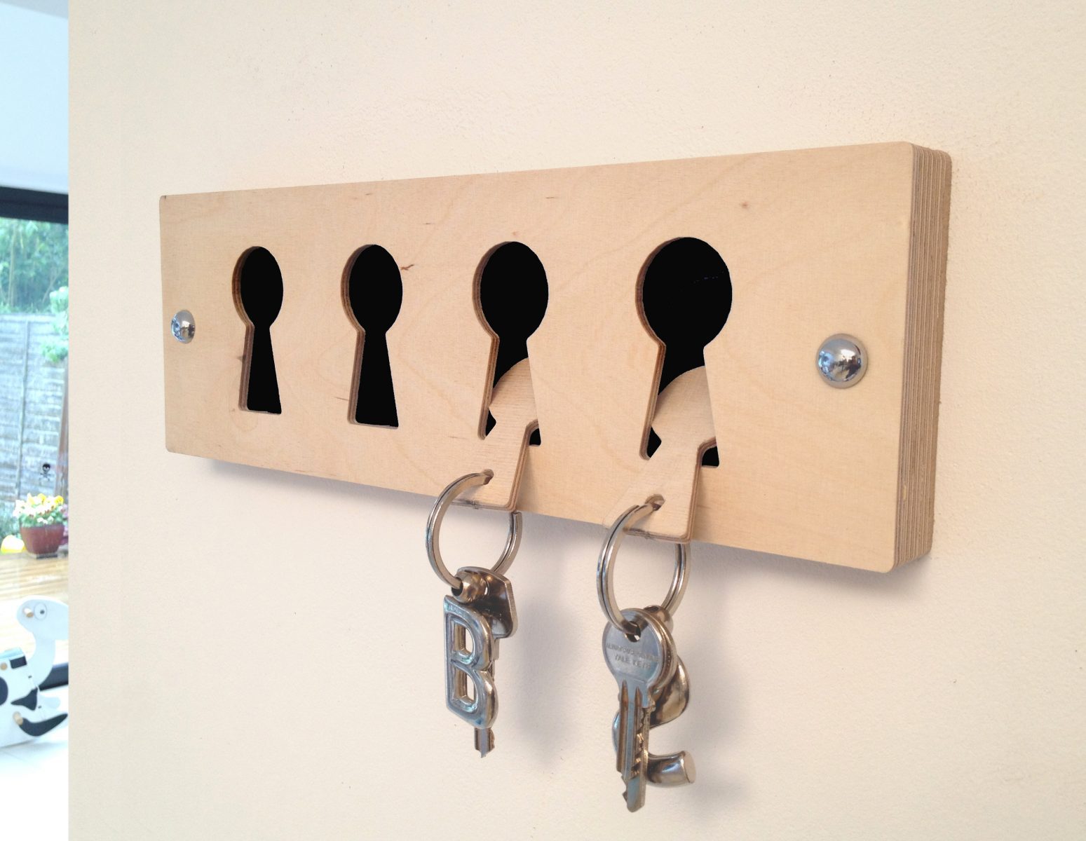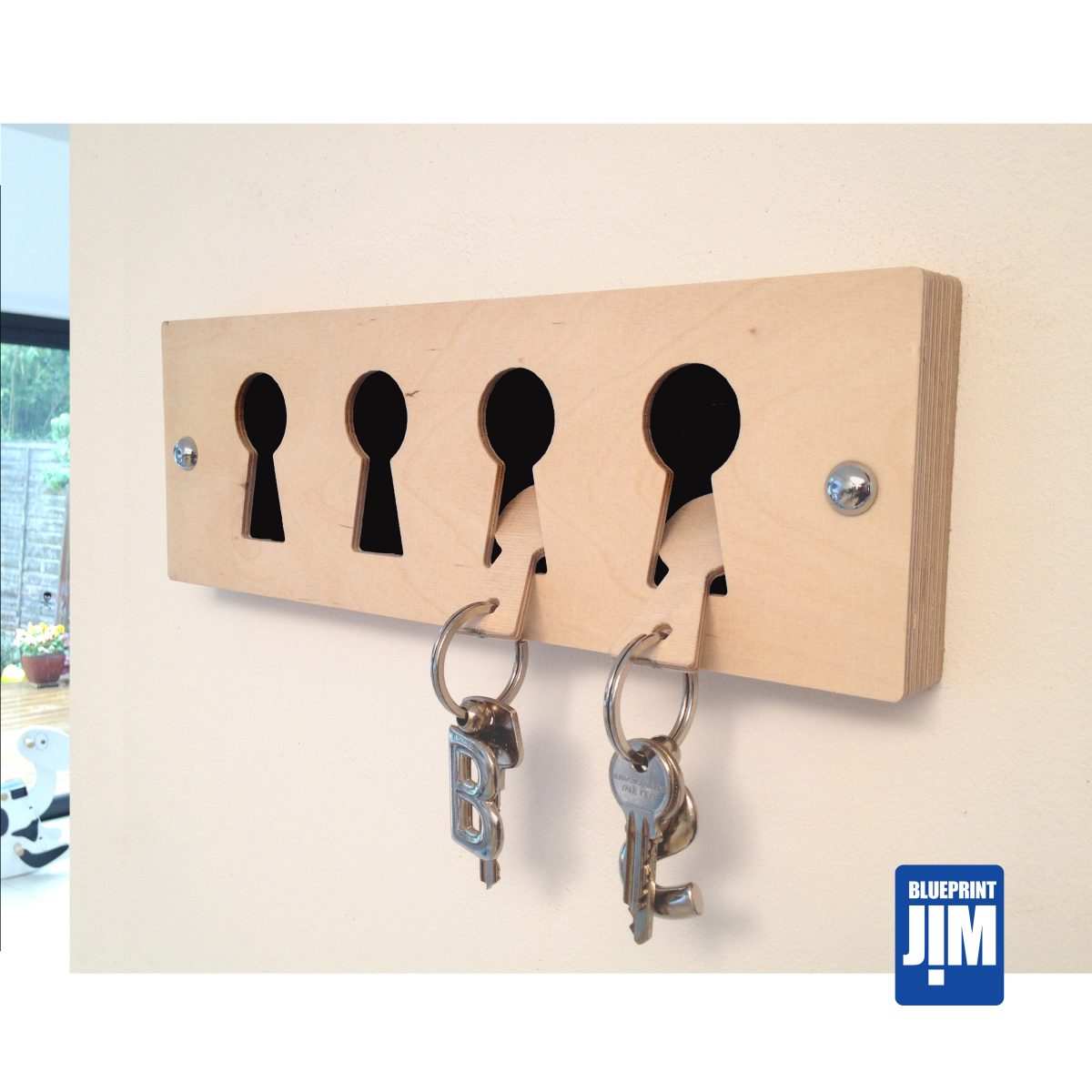 The Black Birch faced ply key rack comes with 4 key fobs which fit into the empty key holes. A simple design to fit into any surrounding. The Wooden style key fob design can also be used on this as well. Front panel made from 1mm Brushed stainless steel, 18mm birch faced ply middle and the back plate 3mm MDF. 300mm x 100mm x 22mm Mirror screws and rawl plugs included.