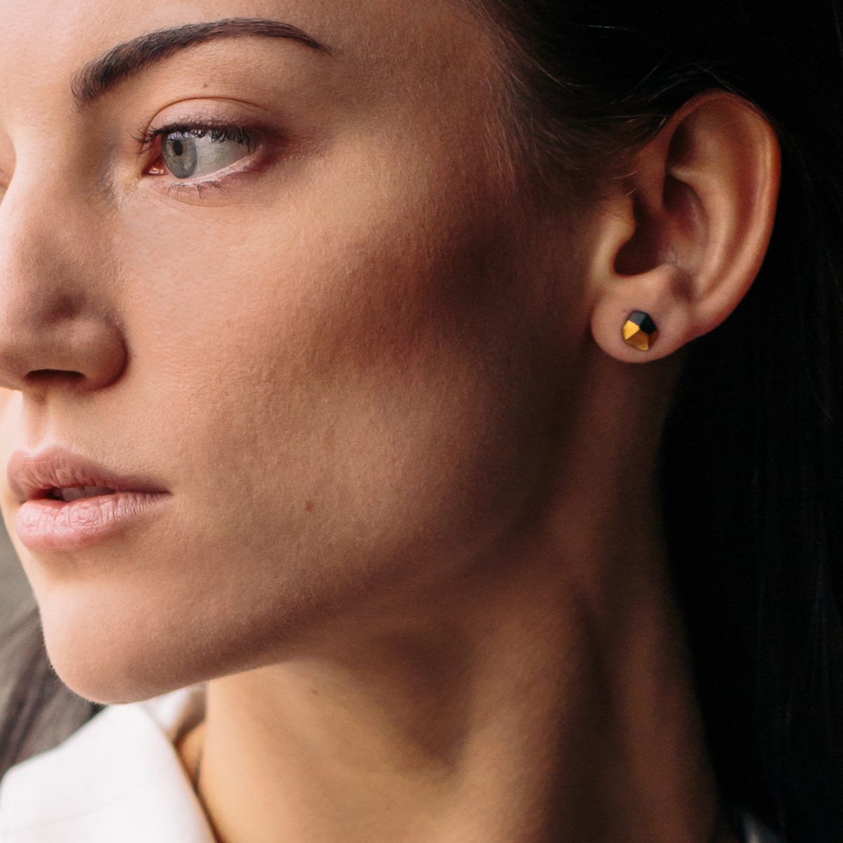 The geometric design looks great with the bold contrast of oxidised silver and gold, perfect for everyday wear.