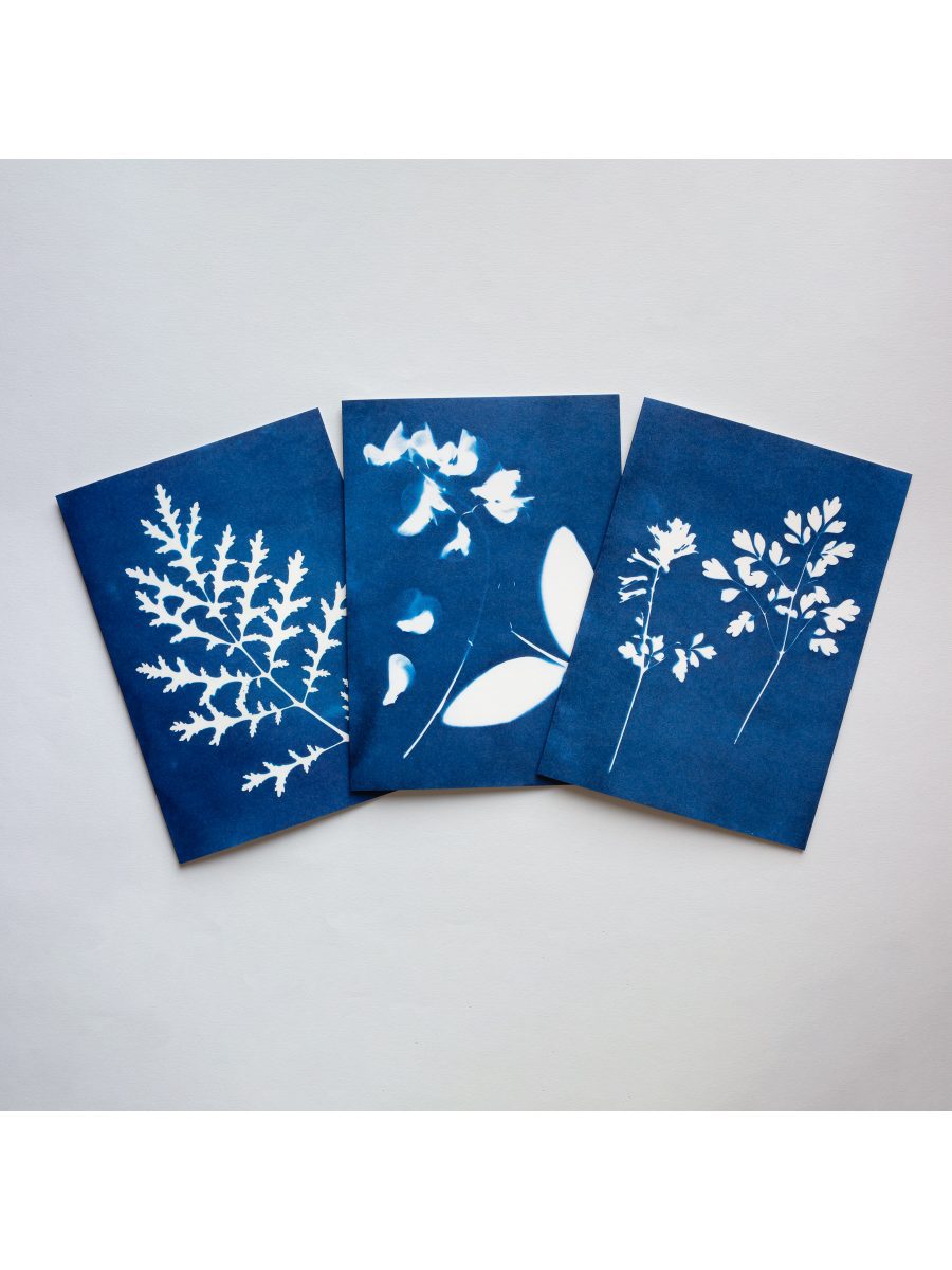 Blue Cyanotype Botanical Greetings Cards (Blank Inside) – Set of 3