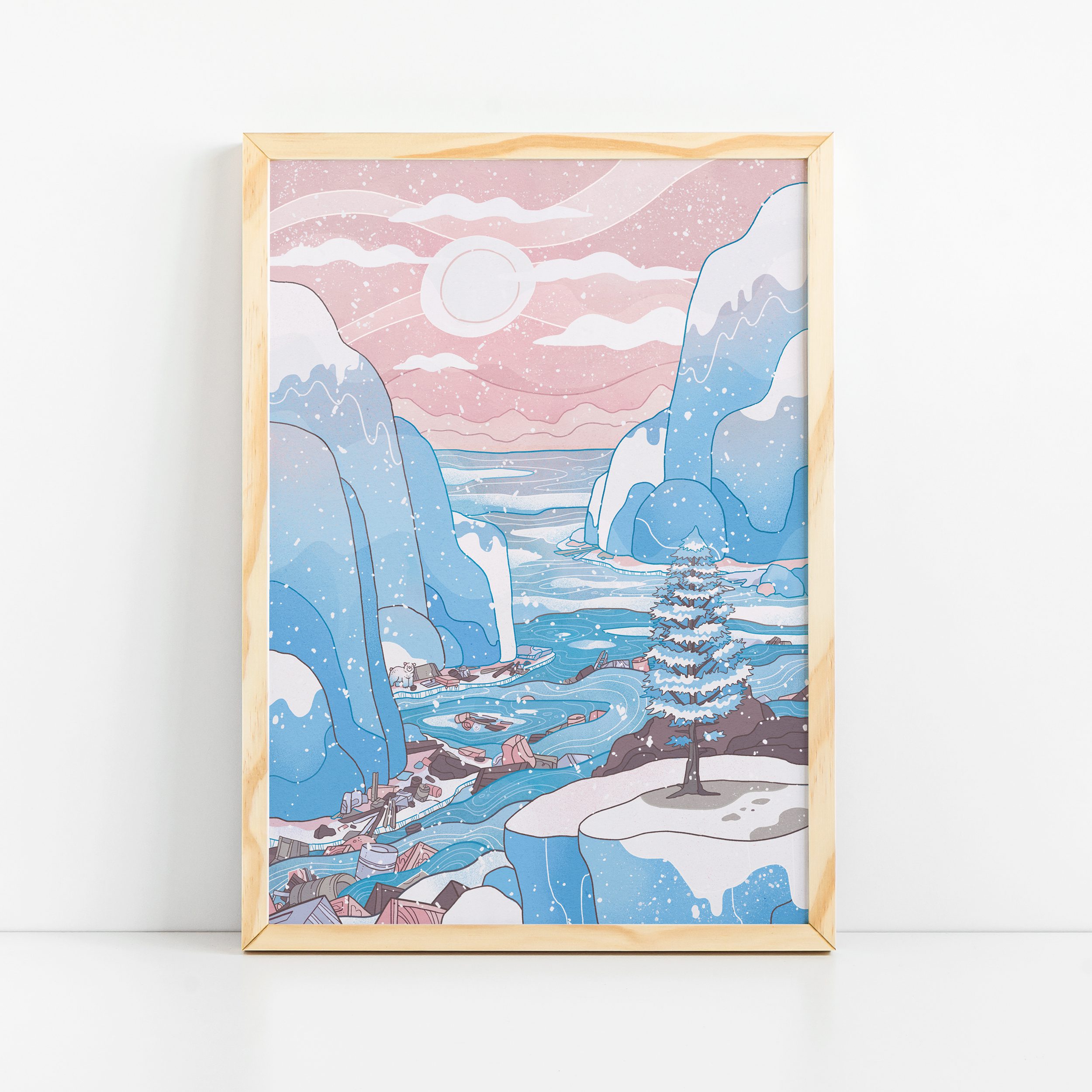 Blue Mountains Art Print, Arctic Art Print, Global Warming, Plastic Pollution, Winter Landscape