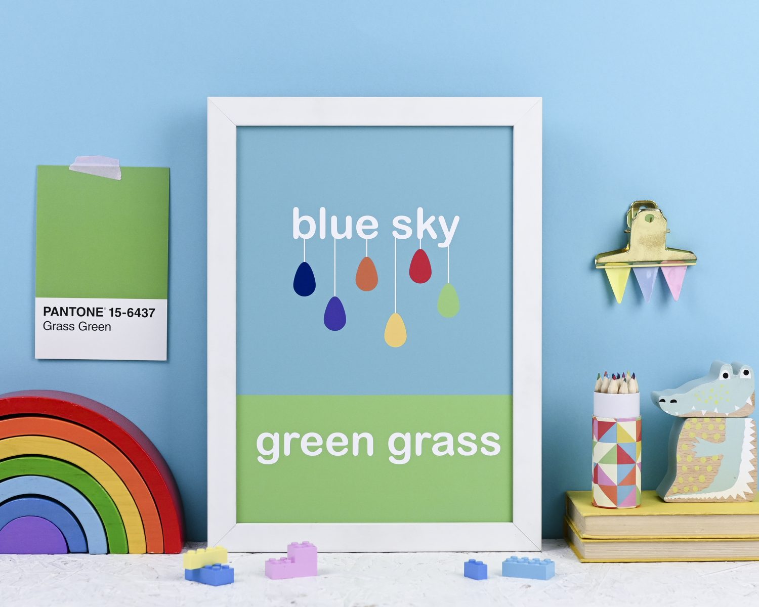 A fun and colourful print that looks super cute in a nursery, kids bedroom or playroom. Great as a gift for new parents!