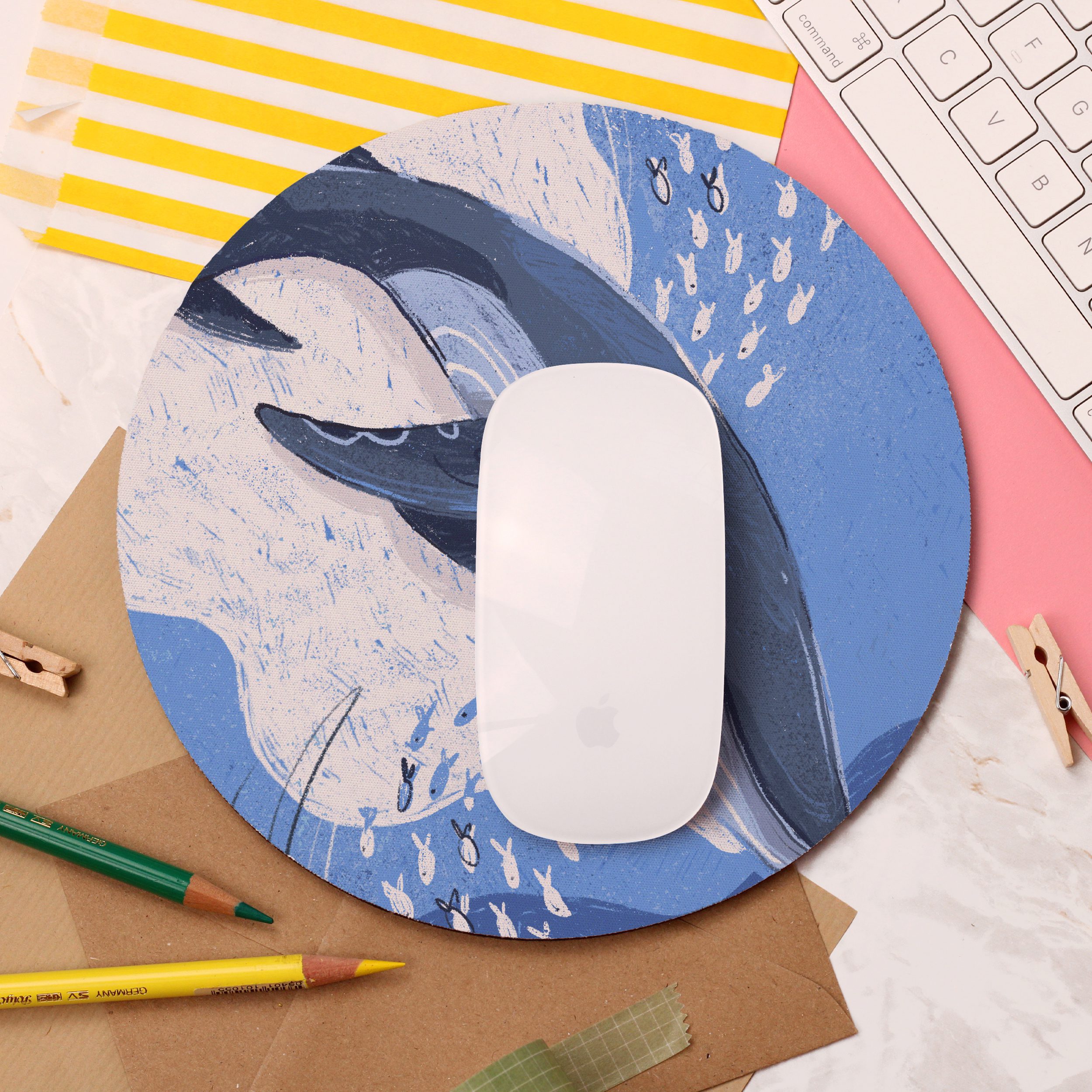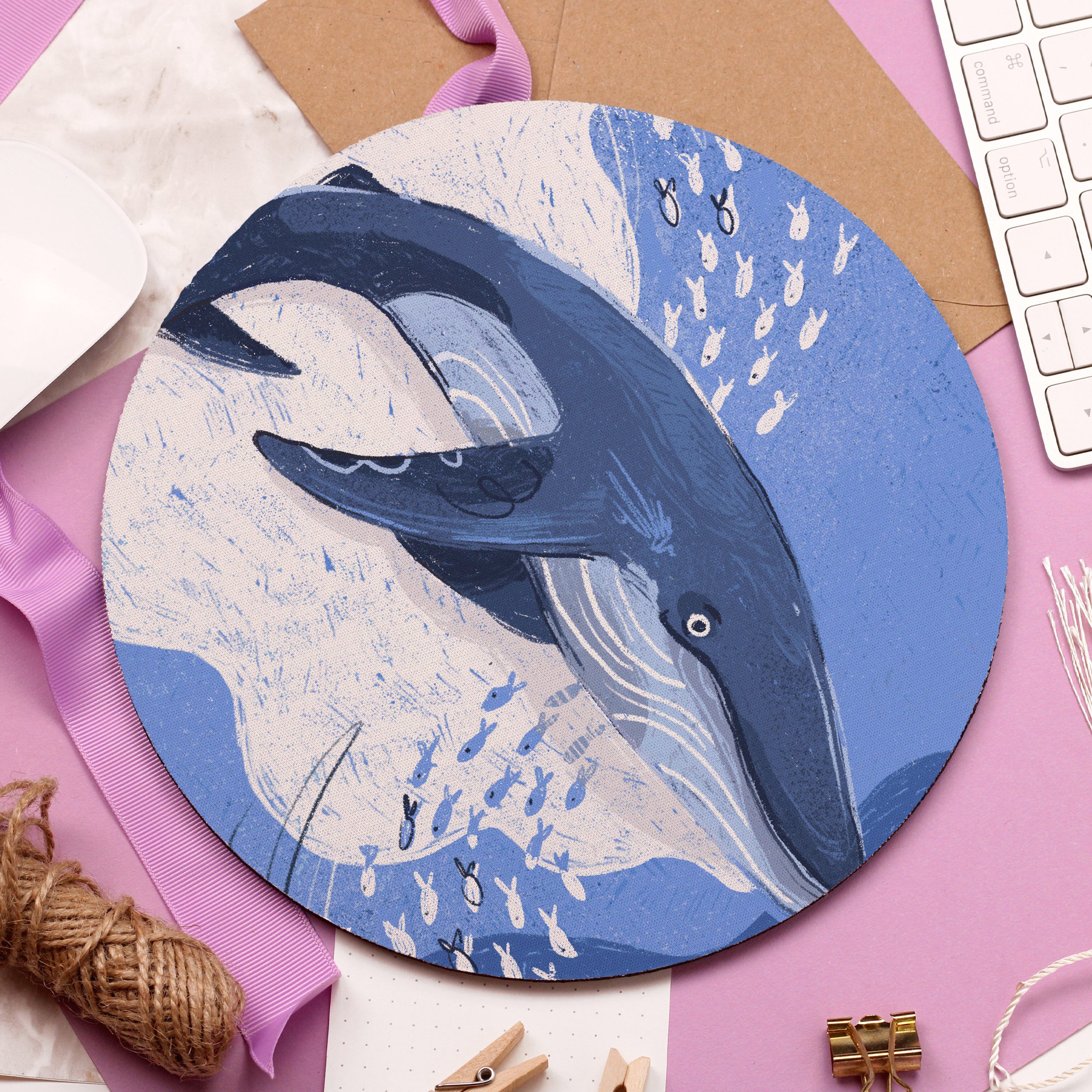 Add a colourful touch to your desk space with this beautiful “Blue Whale” Mouse Pad!