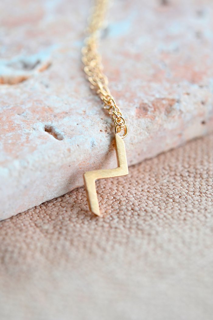 Gorgeous lightning bolt pendant hanging on an 18inch chain. Beautiful alone or worn alongside other necklaces. The pendant is approx 1.6cm in length.
