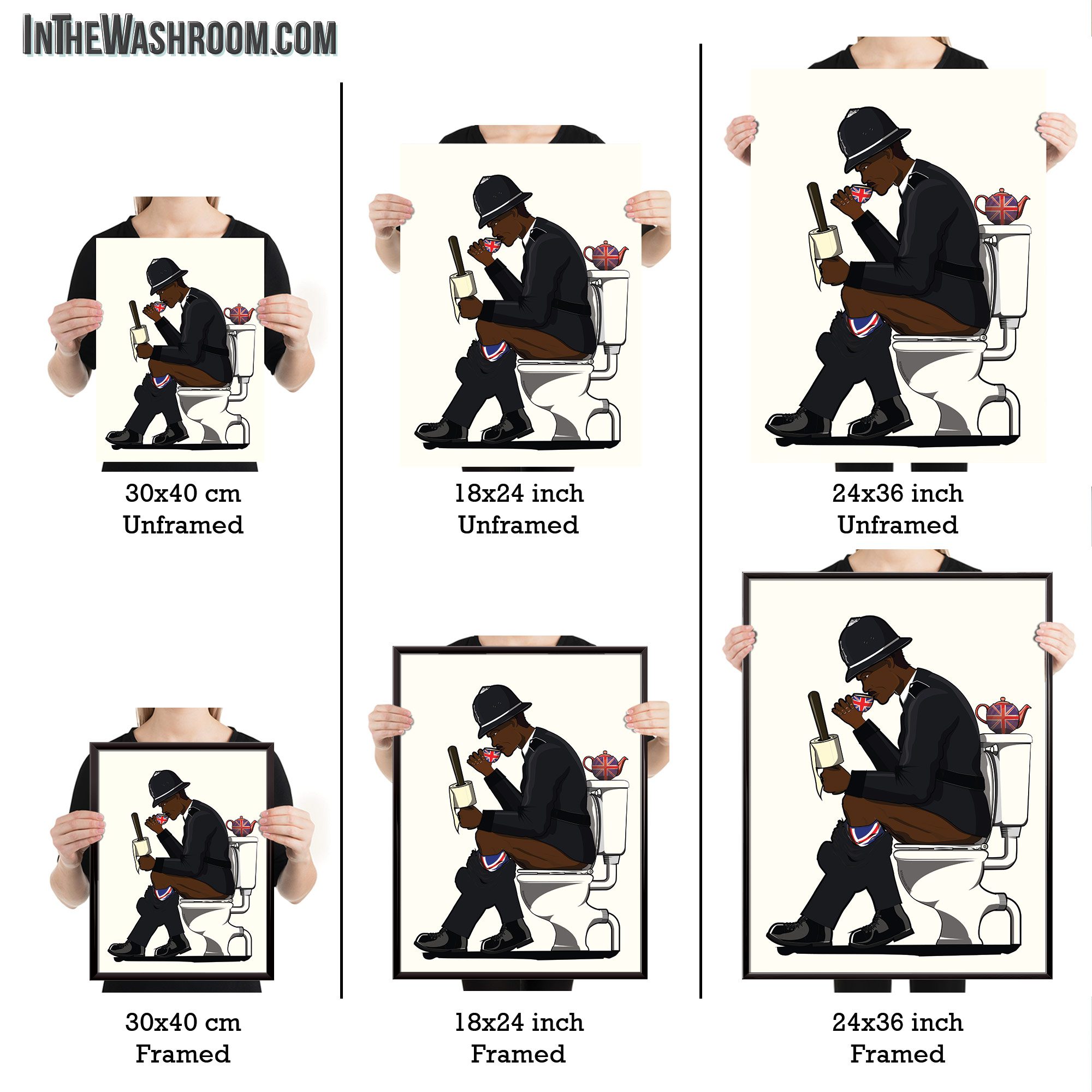Funny artwork for your WC, guest bathroom or en suite. A little bit of Britain for your bath wall. We Also have Churchill and British Soldiers on the Toilet amongst many other bathroom themed posters!