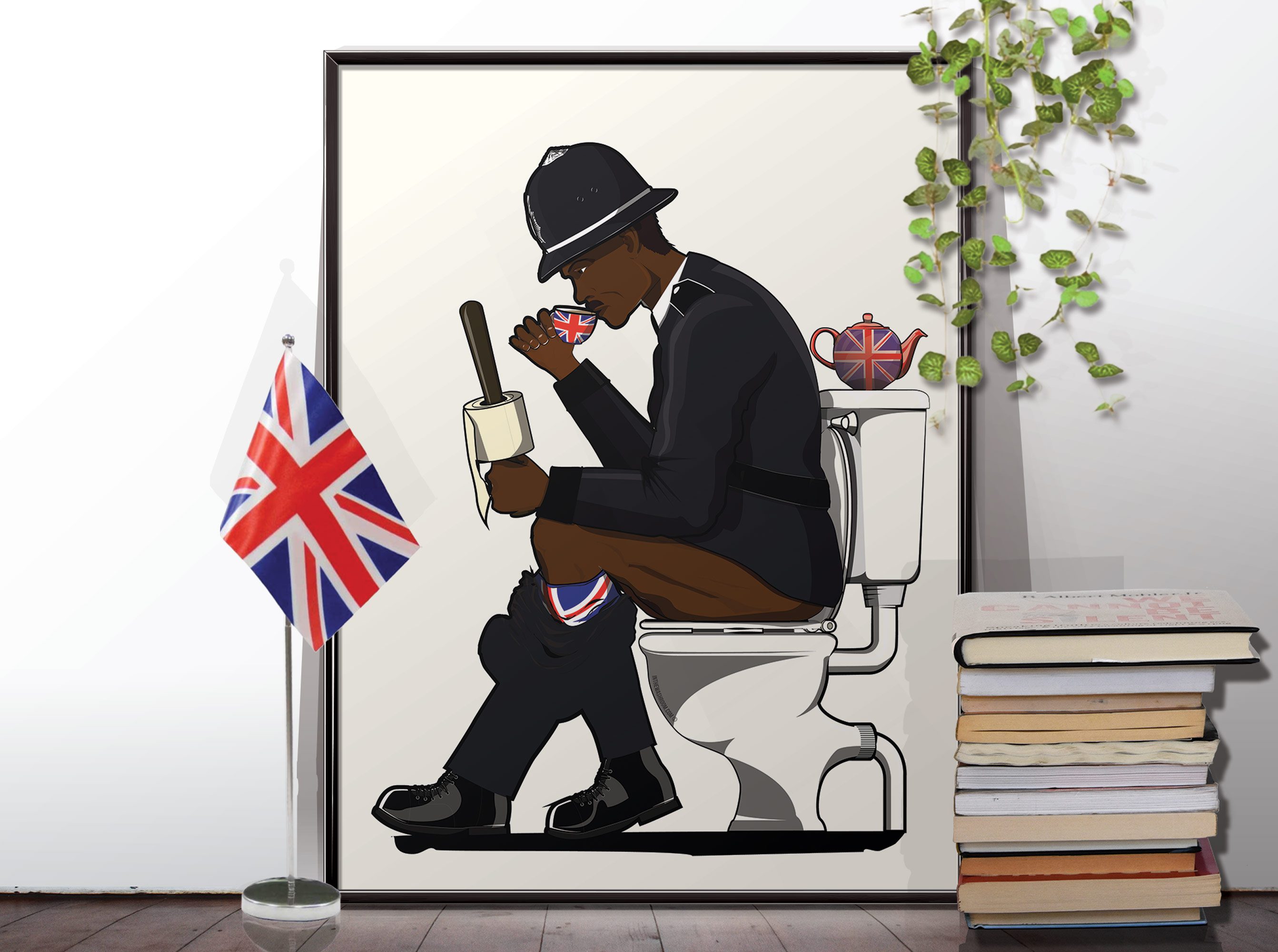 British Police Officer on the Toilet, Funny Bathroom Print