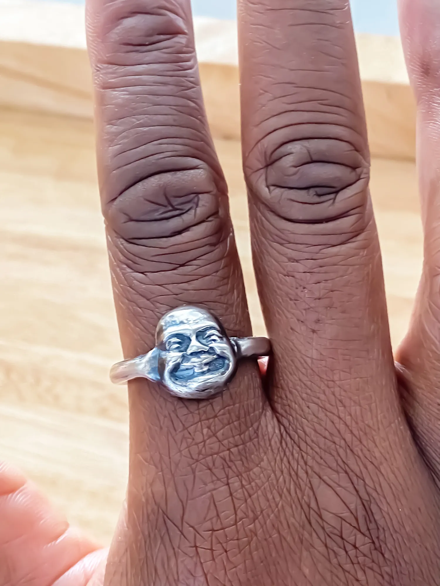 This ring is a thoughtful gift or a grounding piece for your own collection—a daily reminder to stay centred in a fast-paced world. Whether worn alone or stacked with other rings, the Buddha Face Ring stands out with its clean lines and contemplative charm.