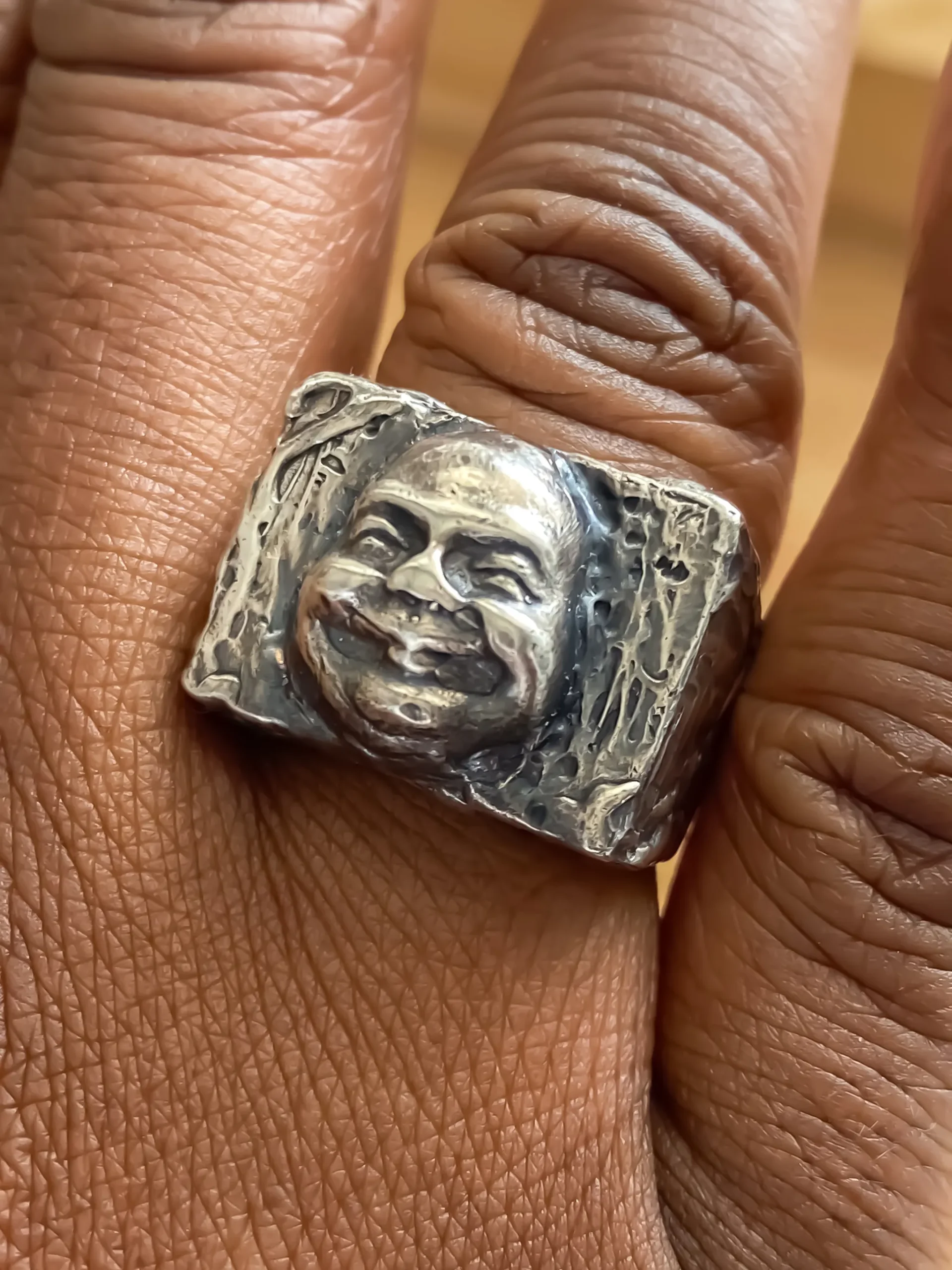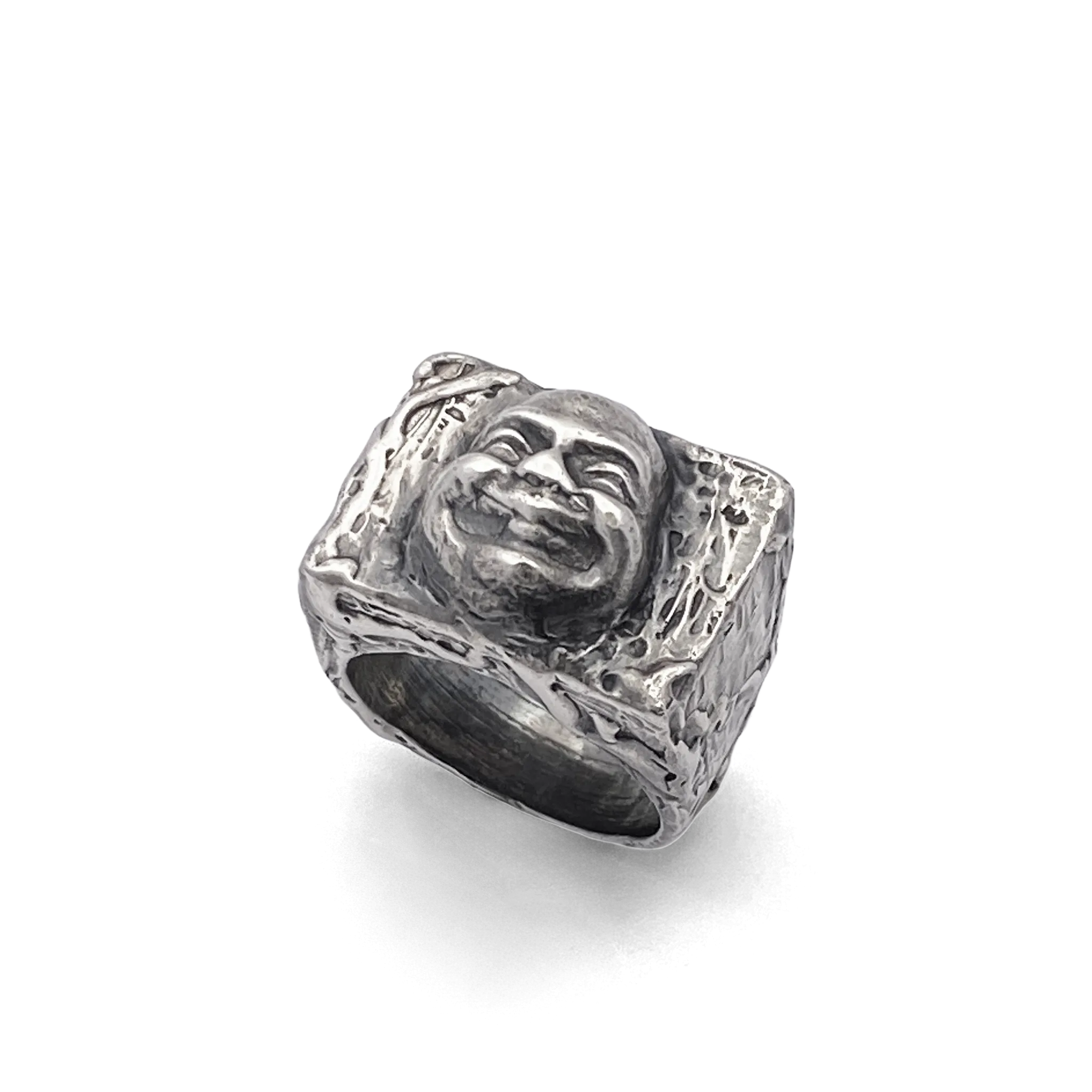 A contemporary expression of stillness and reflection, capturing the quiet strength of a serene Buddha Signet Ring on a modern, minimalist band. This unique design is inspired by a quiet moment of introspection in New York City – a fleeting spark of peace in the midst of chaos, now cast into something you can carry with you.