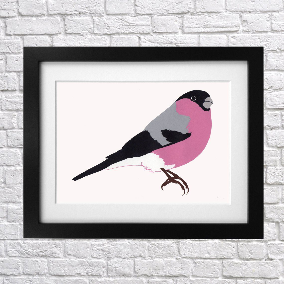 Part of a series of prints representing Birds of the British Woodland. This is a 5 colour screen print of a Bullfinch in pink, light grey, mid grey, black and brown. Each print is designed from an illustration in Indian ink on acetate before being exposed to a silk screen and hand pulled at Sheffield print club. We print each of our prints with care and attention to detail onto 220gsm seabright paper with Dahler Rowney acrylic inks for a truly special end result.
