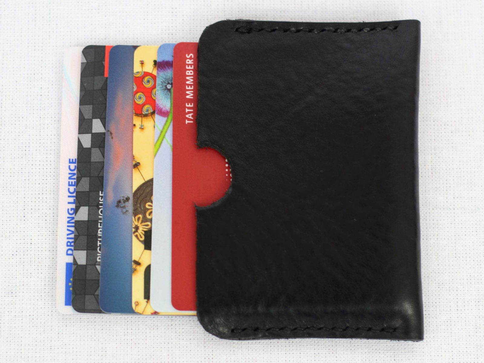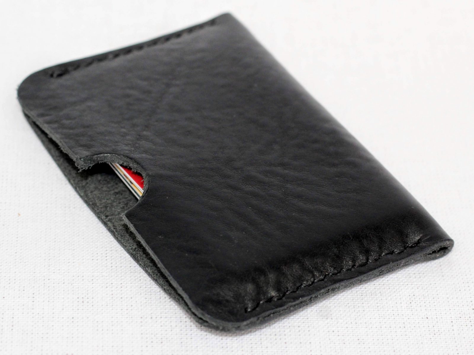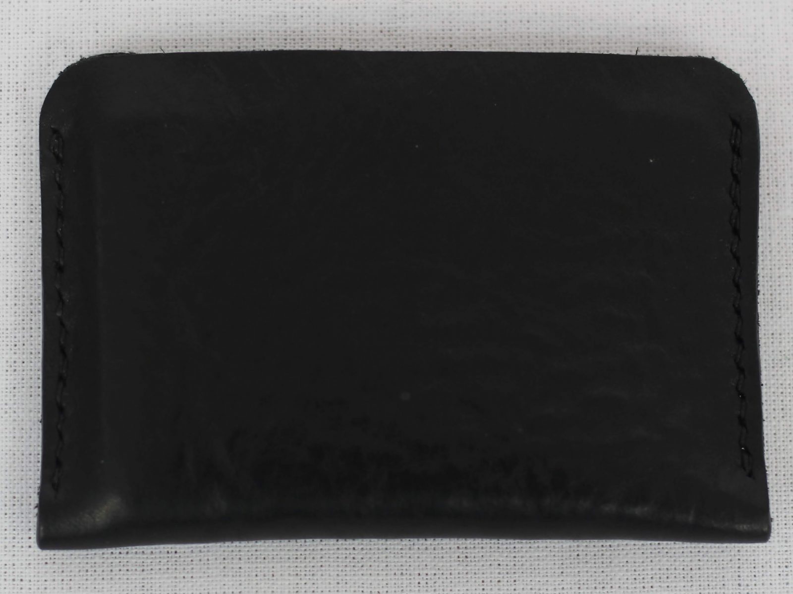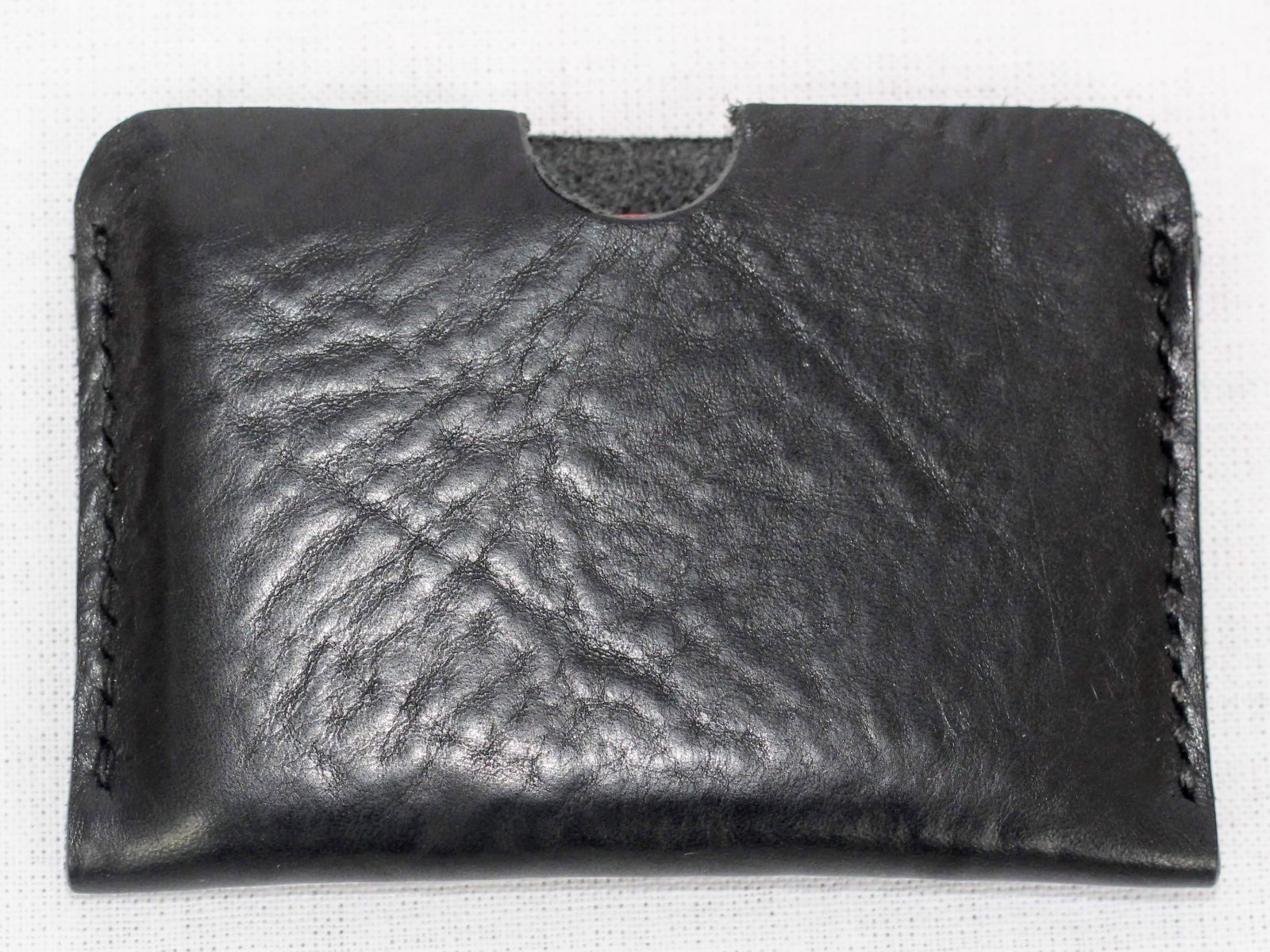 Minimal leather wallet for cards. Black vegetable tanned “bubble grain” leather. Waxed linen thread