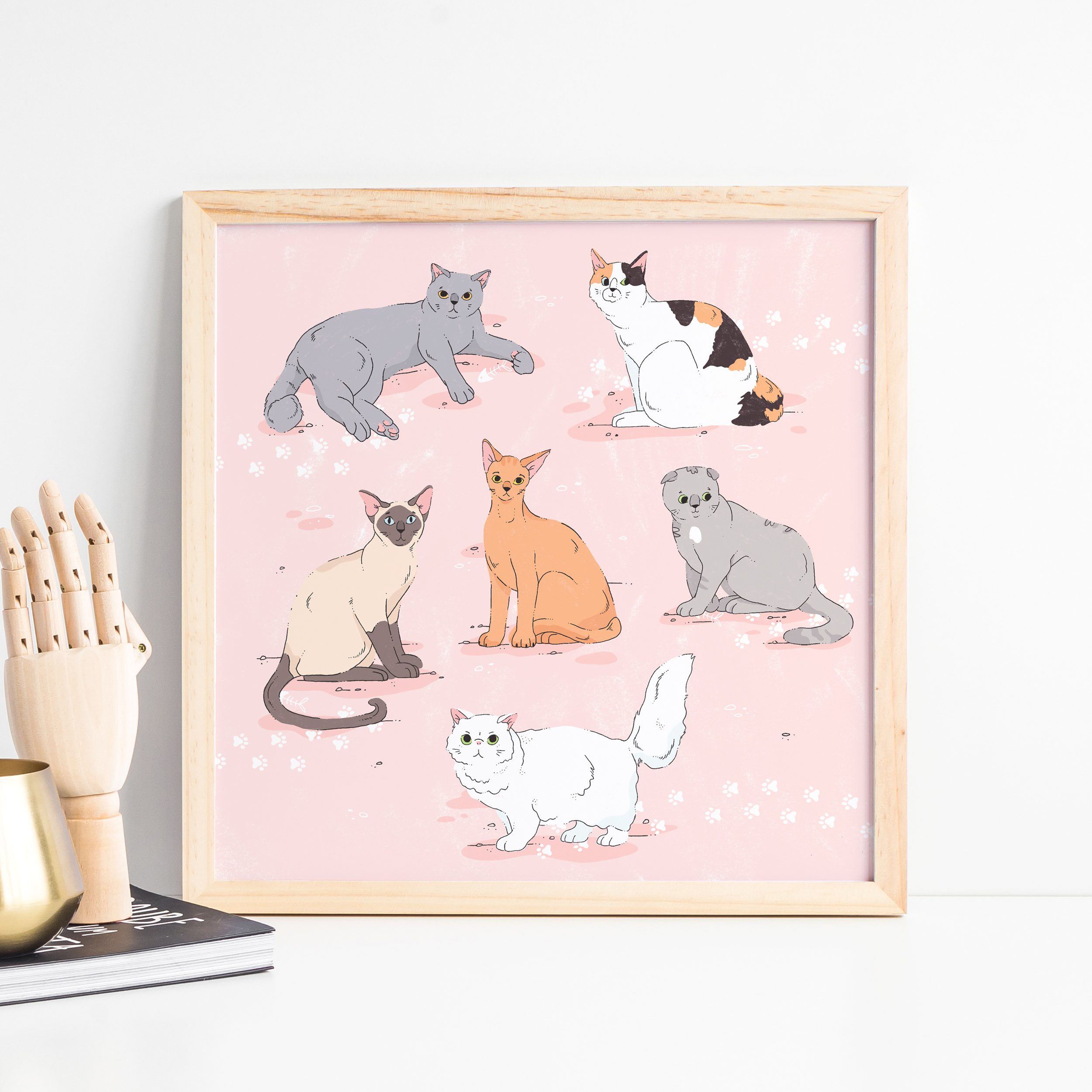 Whether you’re decorating a gallery wall or gifting a fellow cat fan, this cat-themed art print brings warmth and personality to any interior.