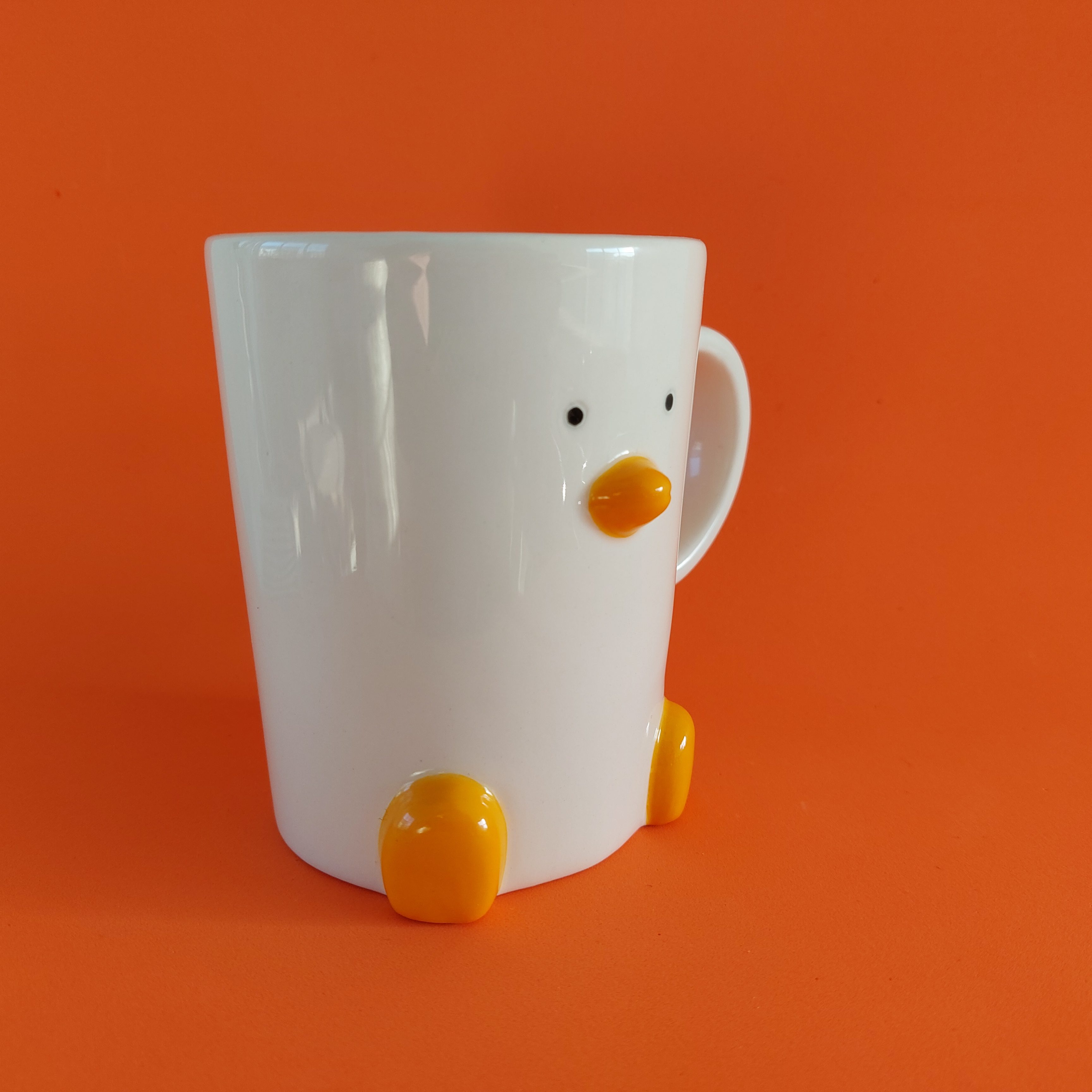 Add a touch of whimsy to your daily routine with the Ceramic Duck Mug by Haus of Honk. Designed by Richard Moonstreet, this charming mug features a minimalist duck face with a bright orange beak and feet, bringing joy to every sip.