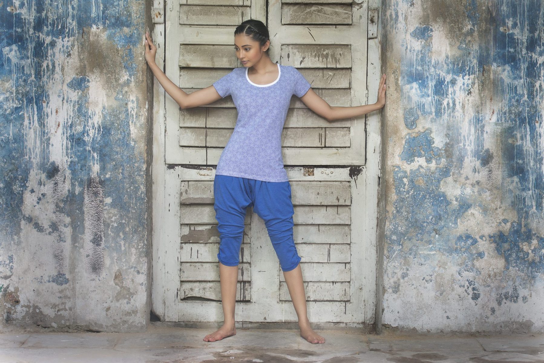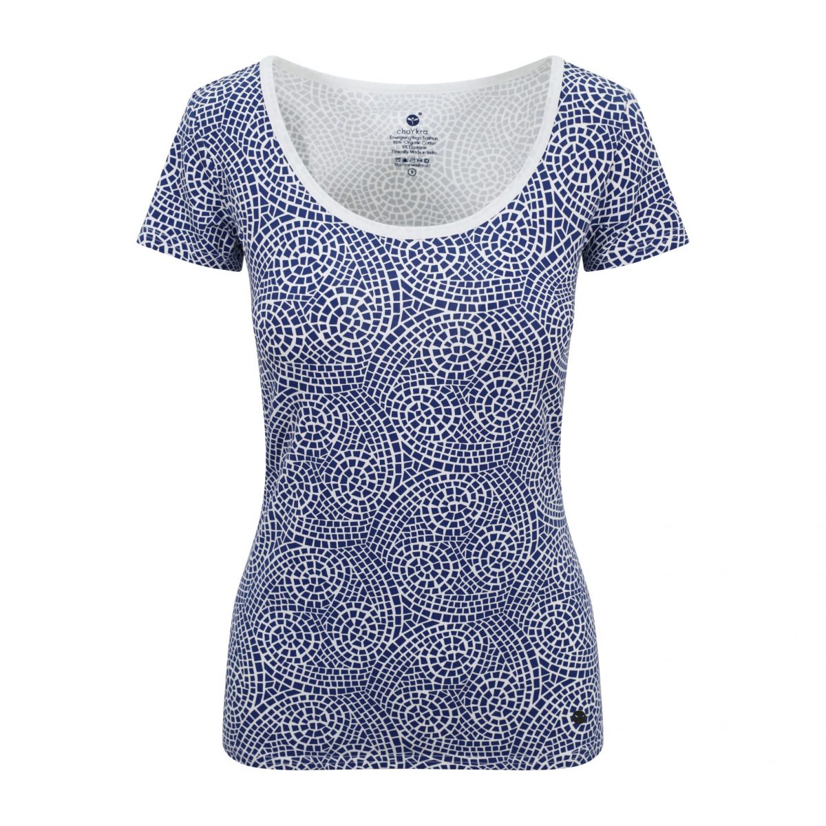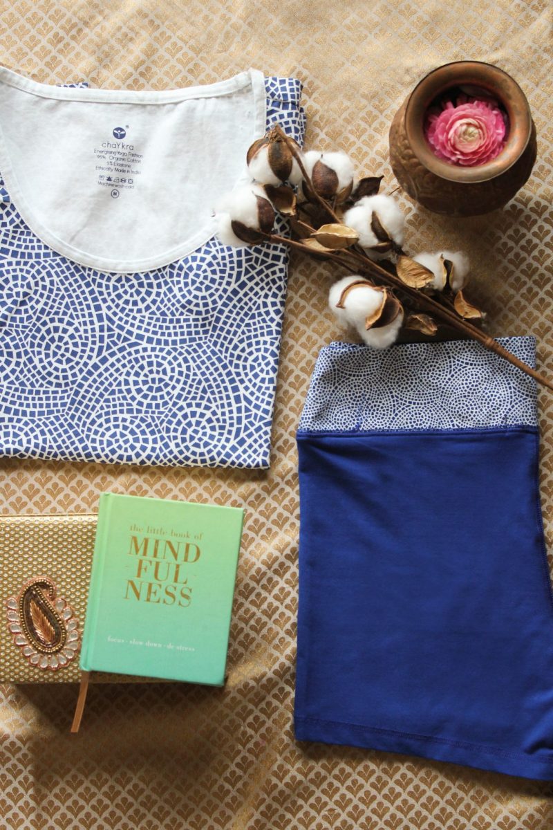 This chakra energy swirl top is made from our unique organic cotton stretch material. This top will be a favourite choice for your yoga class due to its comfortable feel and beautiful Indian inspired print.