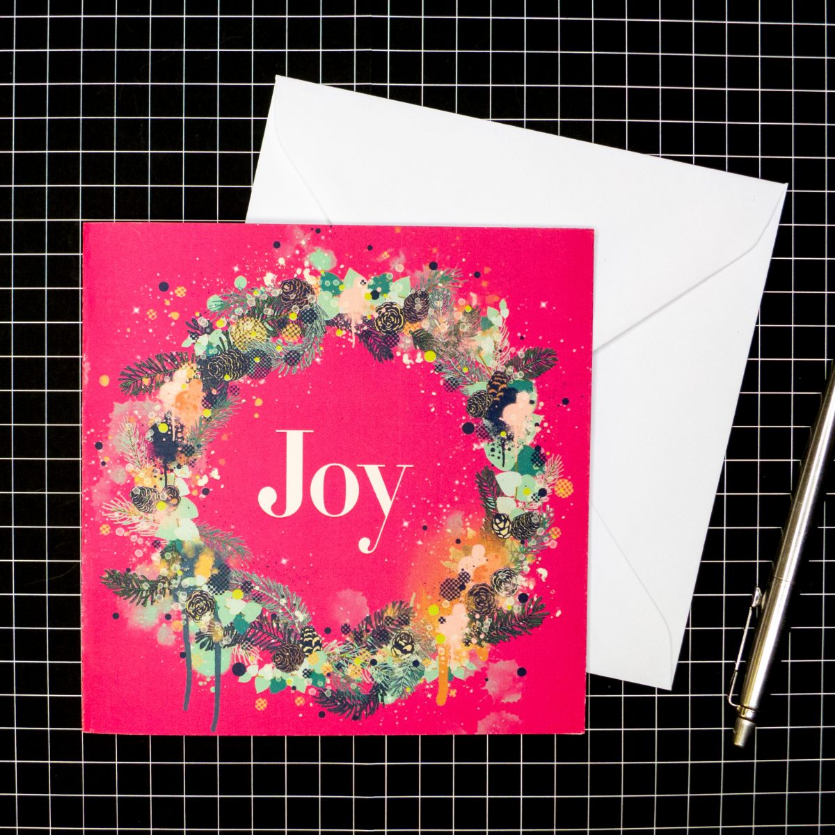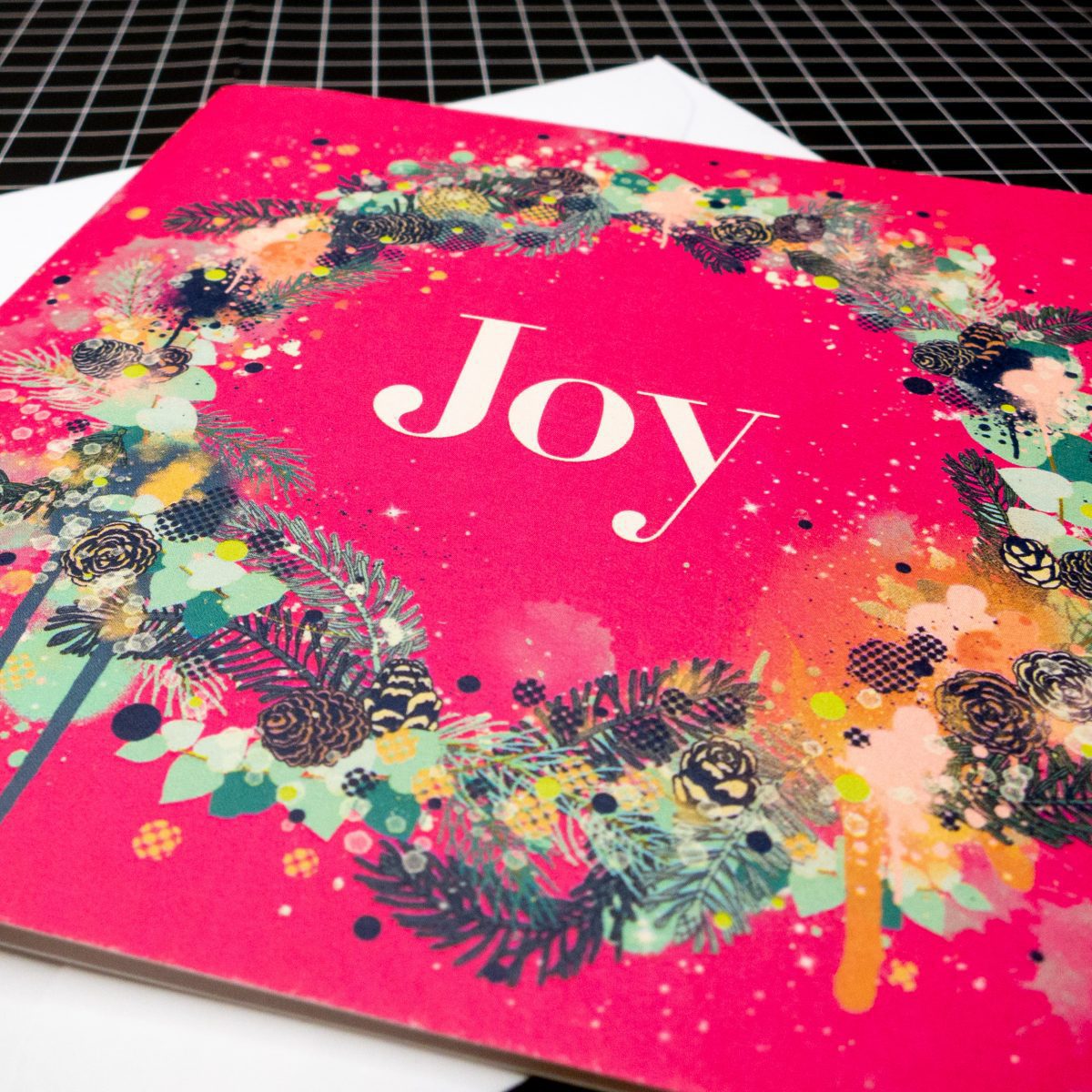This design is called ‘Joy’ and is a combination of traditional Christmas motifs alongside some more contemporary expressive abstract mark-making. Street Art meets traditional Christmas in fun, energetic illustrations!