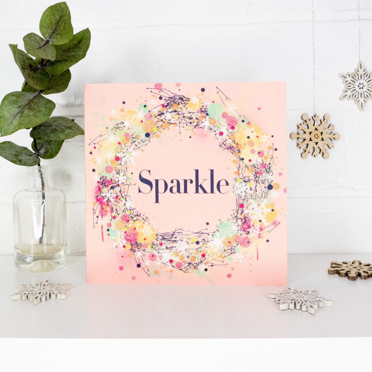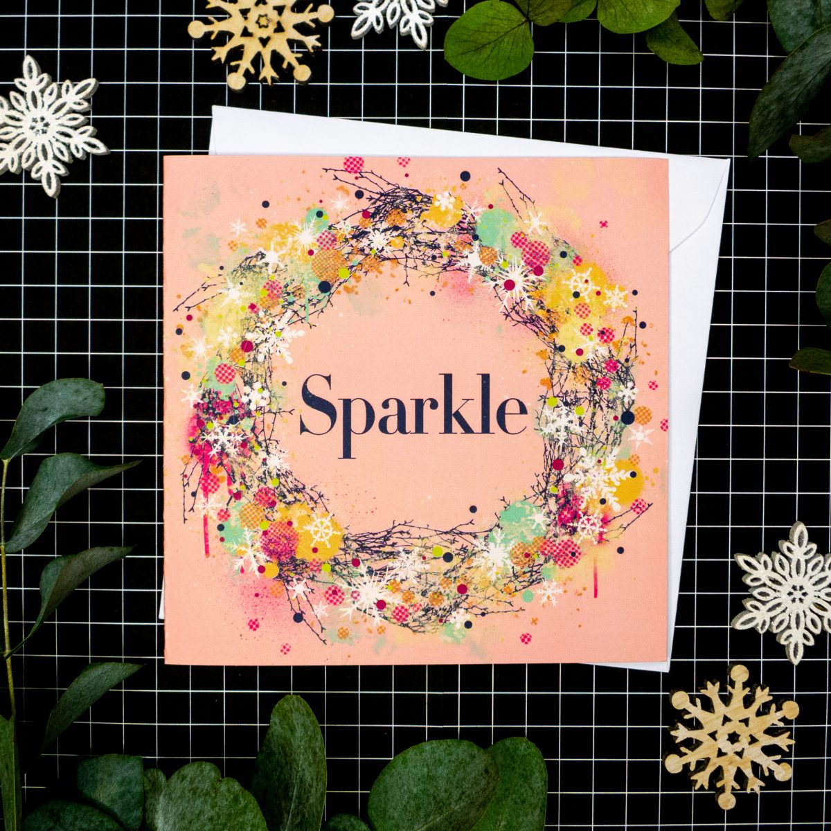 This design is called ‘Sparkle’ and is a combination of traditional Christmas motifs alongside some more contemporary expressive abstract mark-making. Street Art meets traditional Christmas in fun, energetic illustrations!