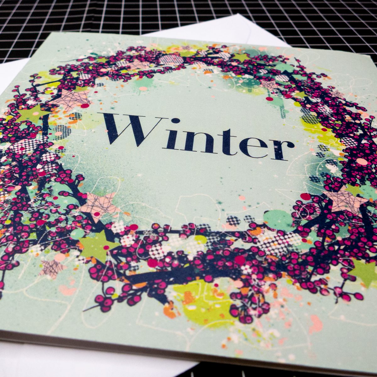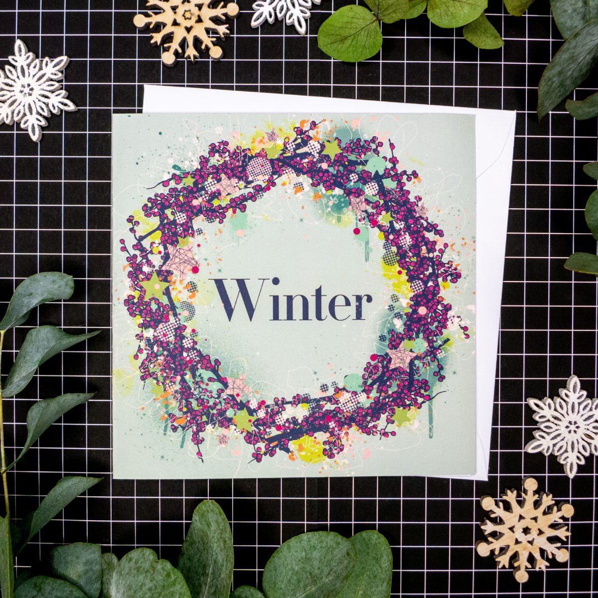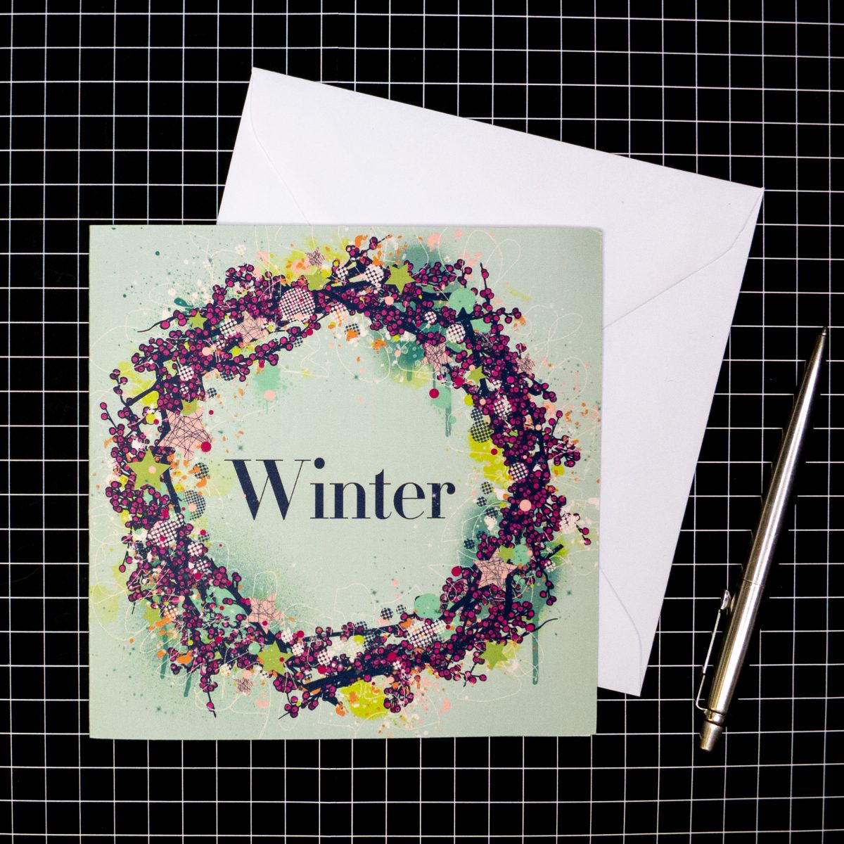 This design is called ‘Winter’ and is a combination of traditional Christmas motifs alongside some more contemporary expressive abstract mark-making. Street Art meets traditional Christmas in fun, energetic illustrations!