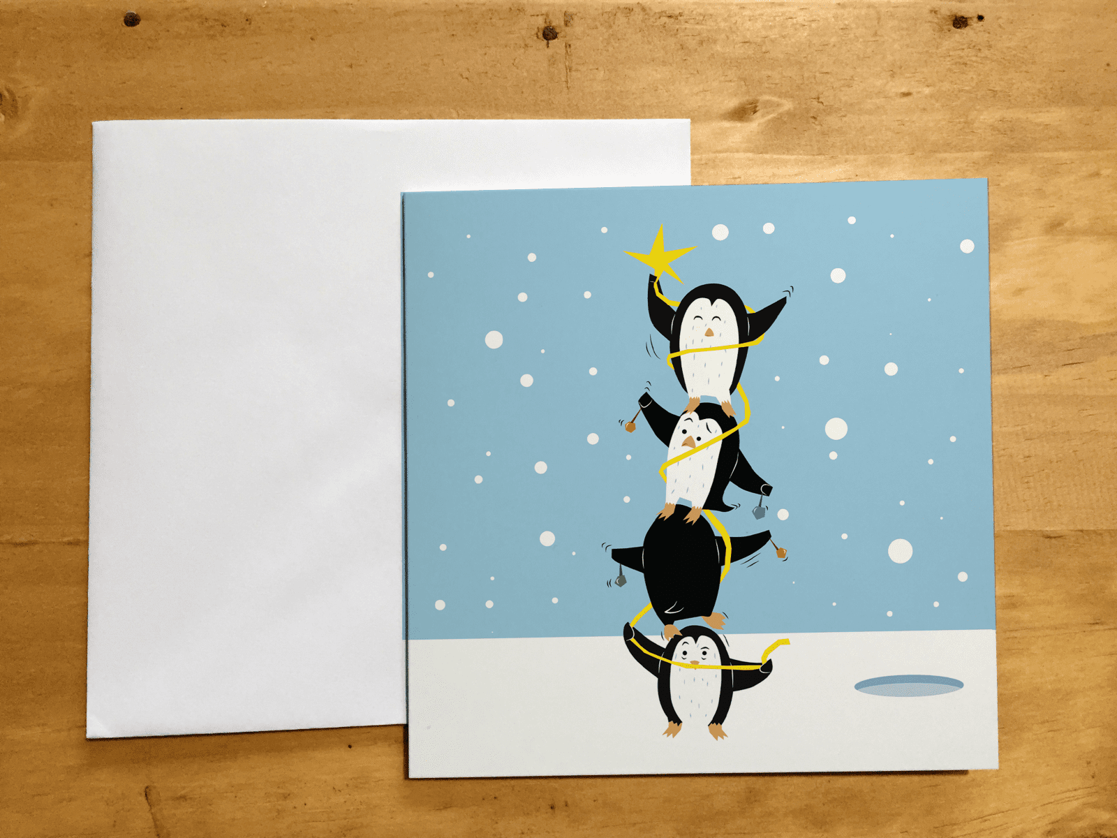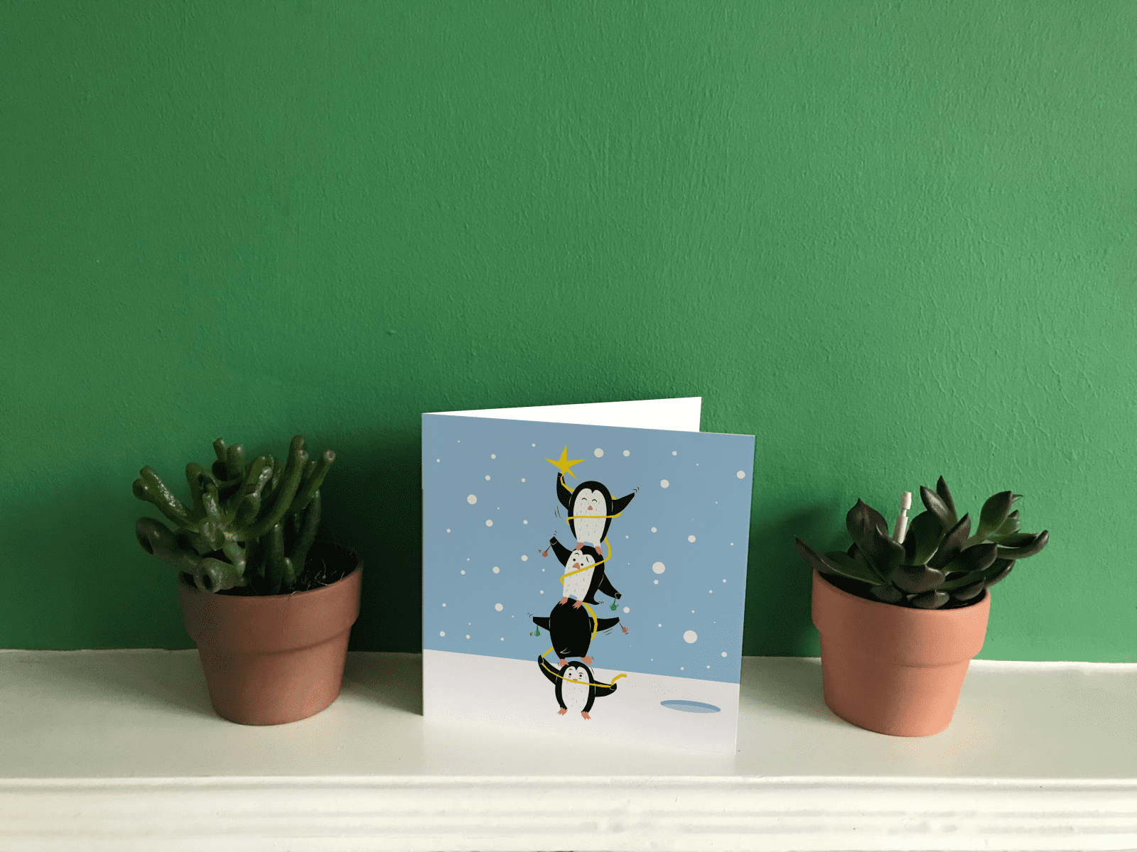 I have illustrated a cute scene will penguins working together to set up Christmas lights.