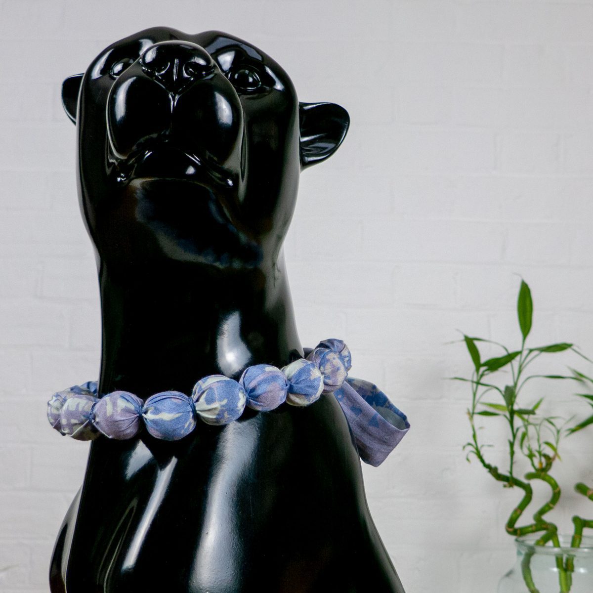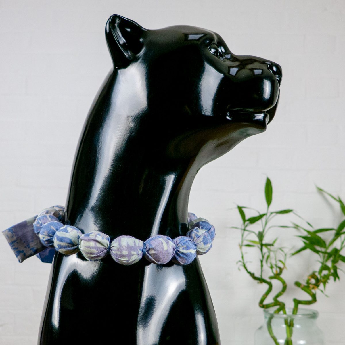 Each necklace is made from recycled swatches of silk-cotton fabric and is 100% handmade by me, the designer. Each piece takes around an hour and a half to create, from cutting the fabric, stitching it to contain the beads, and individually hand sewing each bead in with cotton embroidery thread.