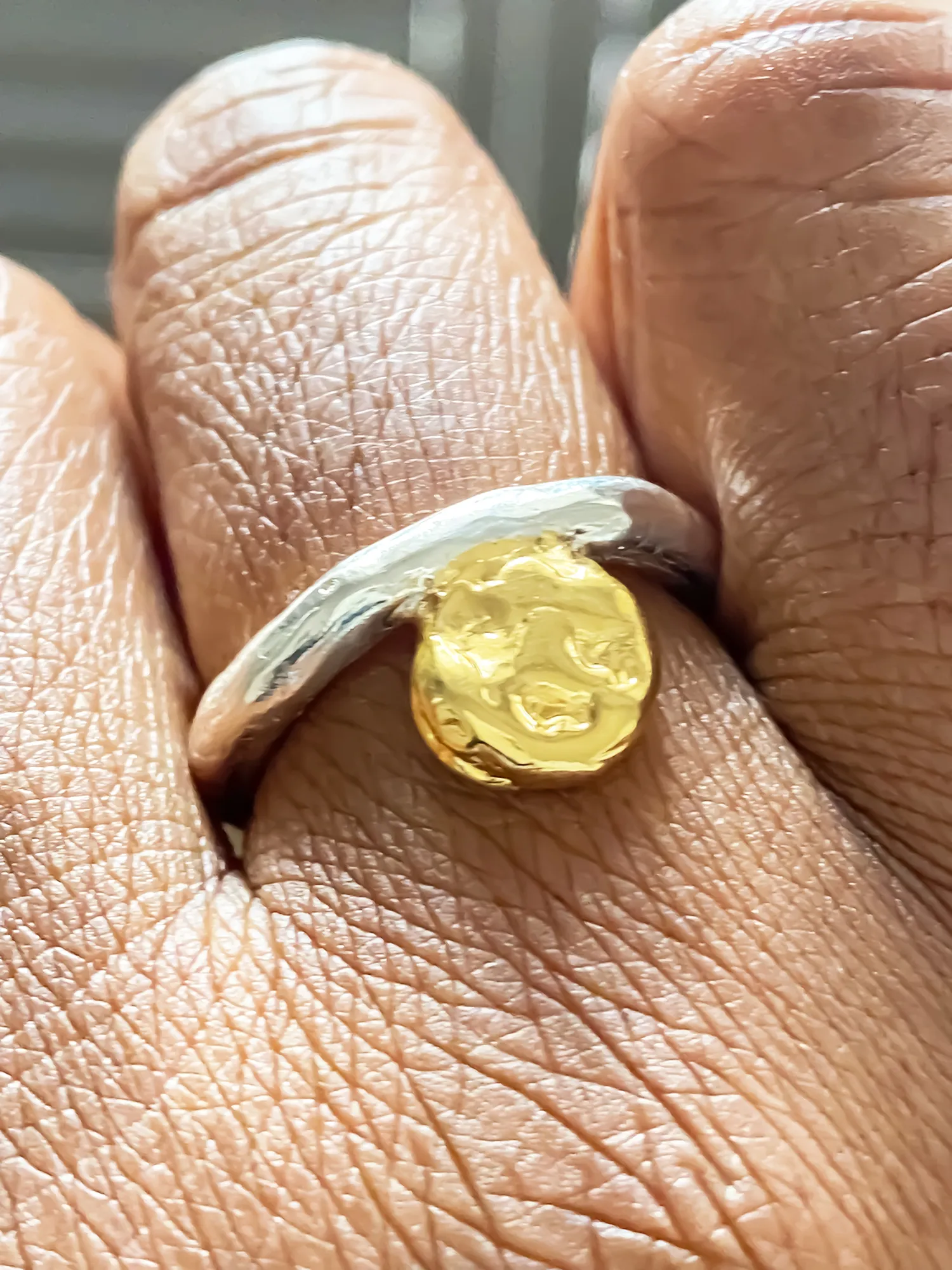 Made from recycled .925 sterling silver or plated in rich 18ct gold vermeil, this ring is a conscious choice as well as a stylish one. Its carefully balanced proportions make it comfortable enough for daily wear while offering a distinct sculptural quality that catches the light with every movement.