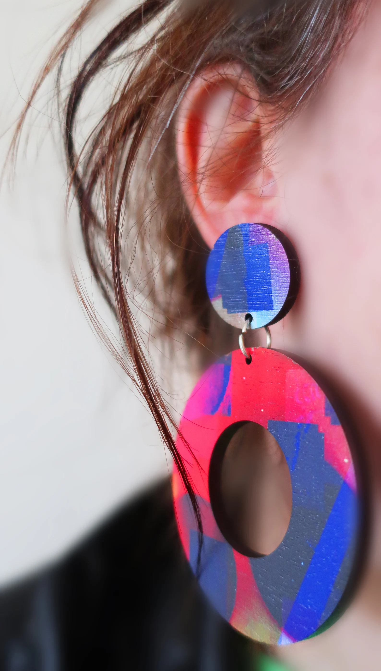Add a pop of vibrant color to your wardrobe with these stunning large hoop earrings. Handcrafted with care, these earrings are perfect for adding a touch of fun and flair to any outfit.