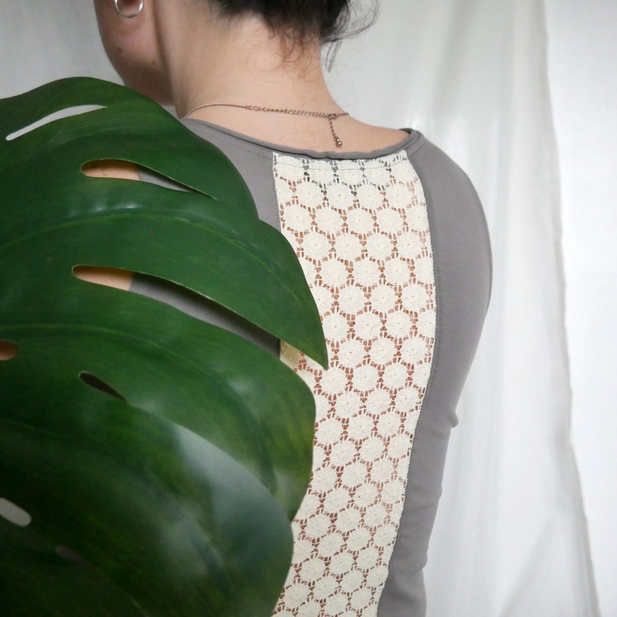 Enhance your yoga wardrobe with a head-turning style in this organic cotton tank with flower designed lace back detail. The grey base colour is enhanced with the contrasting cream lace panel. The neutral colour, along with contrast detail, makes it perfect for a simple,. stylish class to social look. The organic cotton blend gives a premium quality softness, comfortable stretch and breathability.