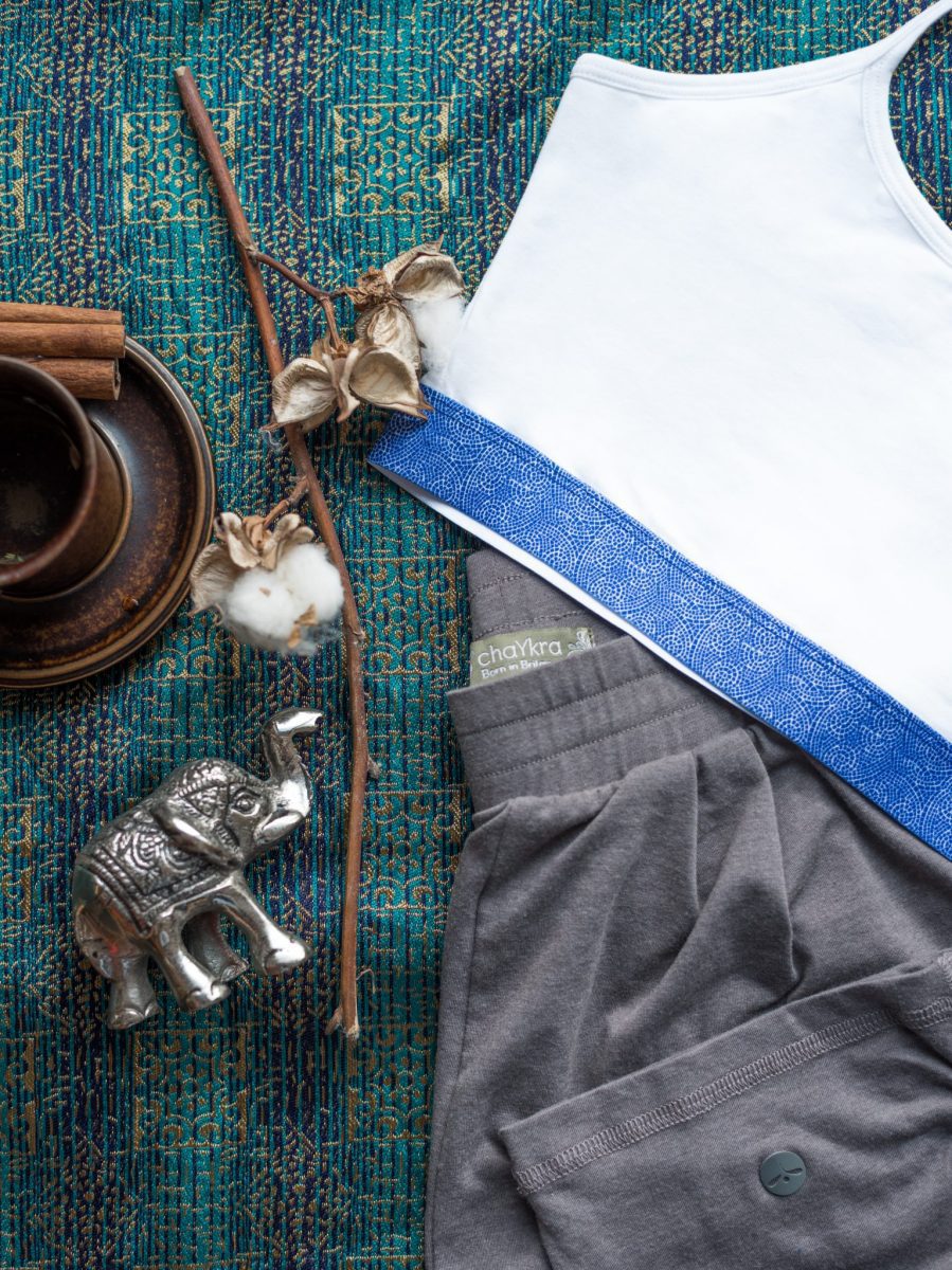 This organic cotton yoga bra delivers on comfort with a super soft finish. Featuring racerback cross over detail, this royal blue bra is a perfect under-garment for many workout tops. The black under-band creates a subtle contrast. This bra provides ideal support for stretching based and low cardio workouts.