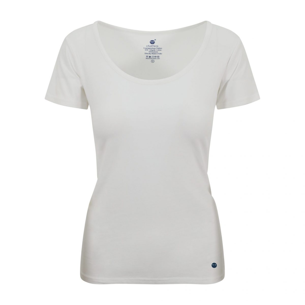 The classic style of the white half sleeve t-shirt showcases the super soft finish and high quality of the organic cotton stretch blend. This design has a moderate rounded neckline. Balancing comfort and simple style, this yoga top will become a favourite staple piece in your yoga wardrobe!