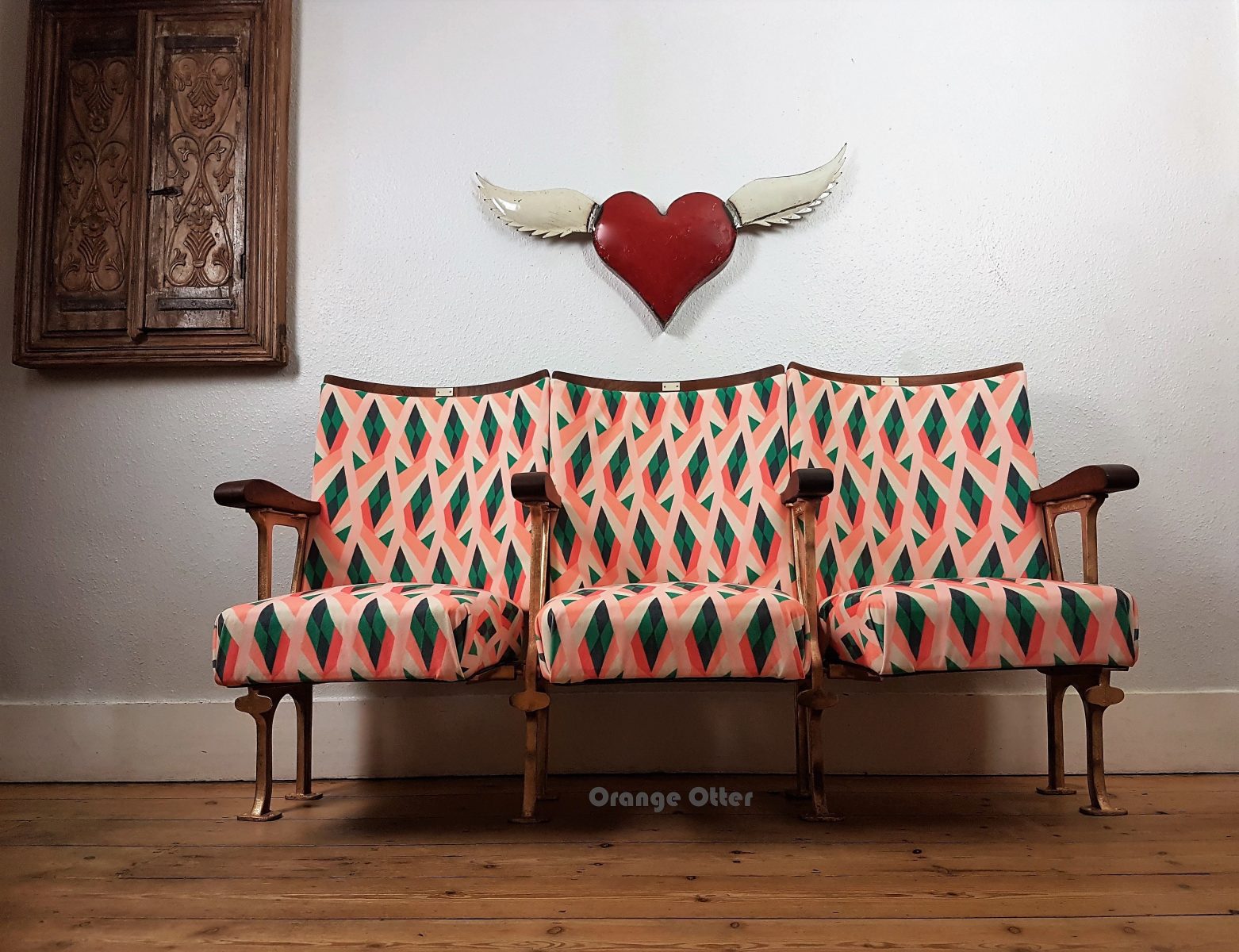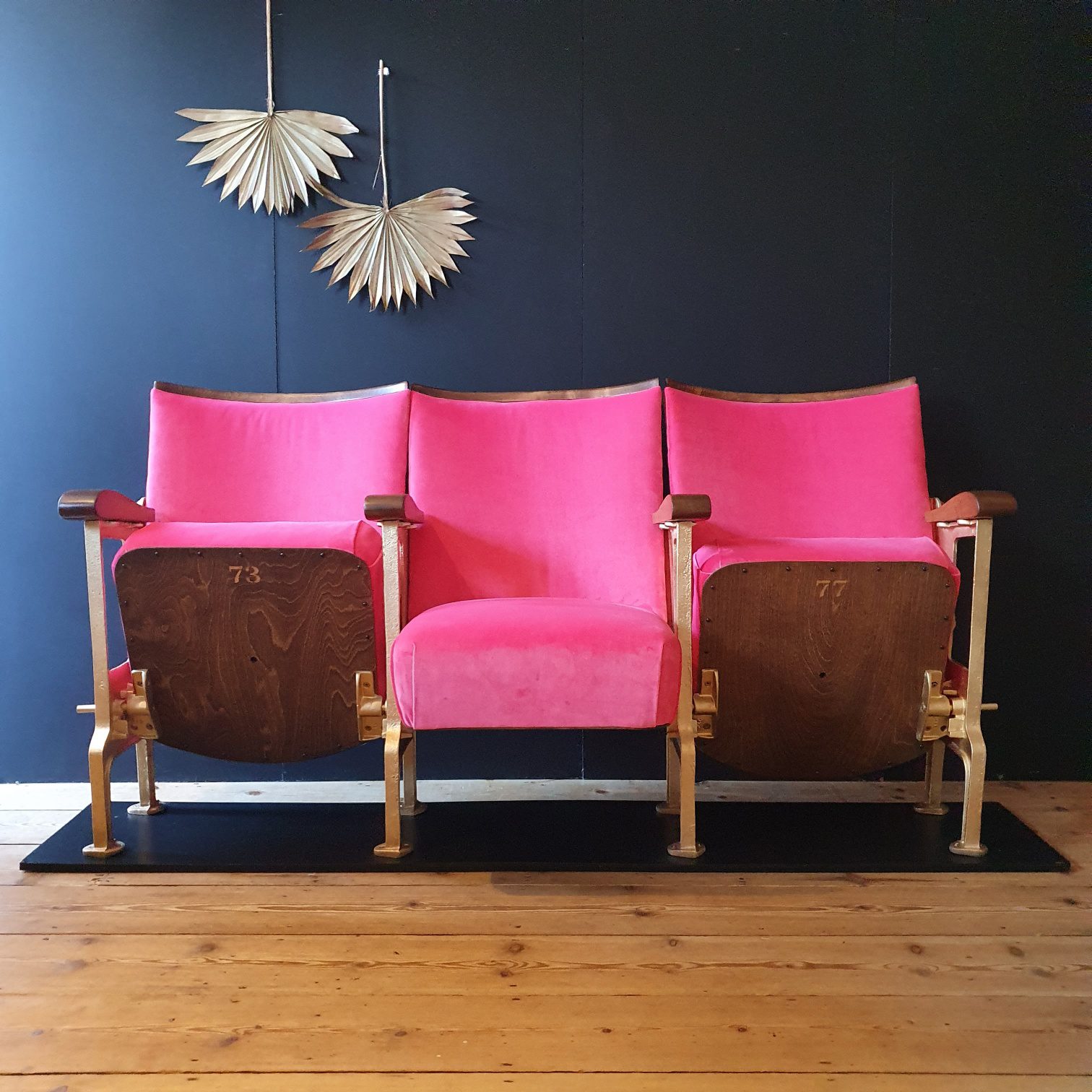 These vintage cinema seats are also available as single seats or in rows of two or more. Please see our listings for singles and two seaters. Please contact us if you would like to order a run of more than three seats.