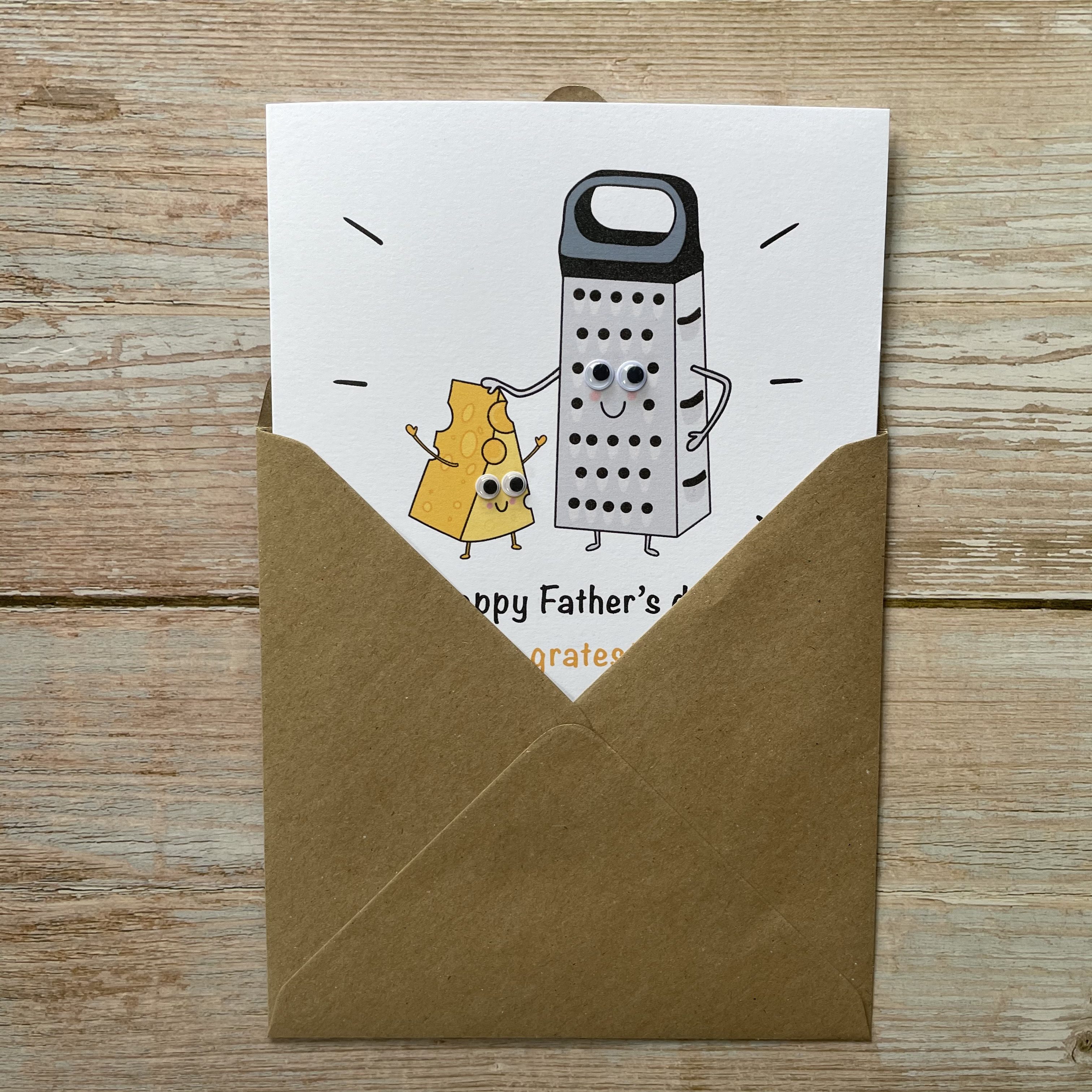 Celebrate your dad in a fun and eco-conscious way this Father’s Day with our cute cheese pun card—because he’s truly “grate!”