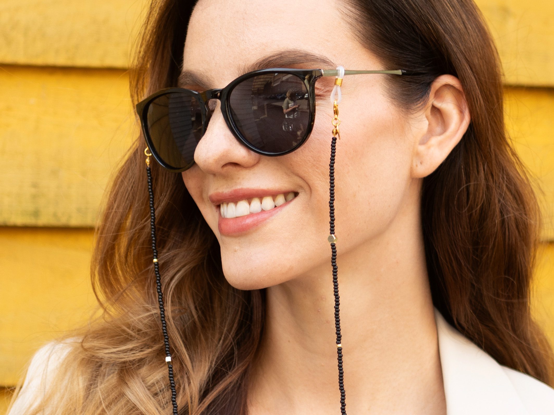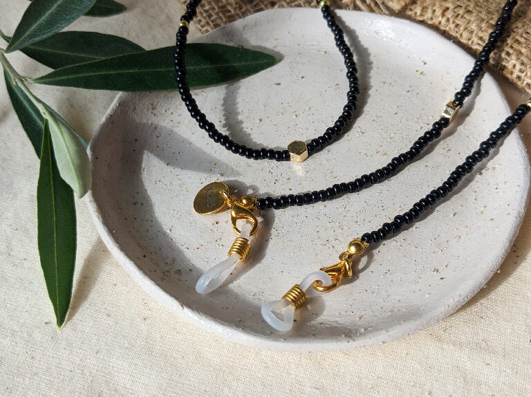 Inspired by Audrey Hepburn’s timeless elegance, the Audrey glasses chain brings a refined sophistication to any look. Crafted with black Czech glass seed beads (size 8/0) and accented with Czech Gold Plated Glass Rocaille beads and Gold Plated Hexagon Spacer Beads, it blends classic beauty with a modern twist. The chain measures approximately 74cm (29 inches) and weighs 12.6g, providing a delicate yet durable accessory.