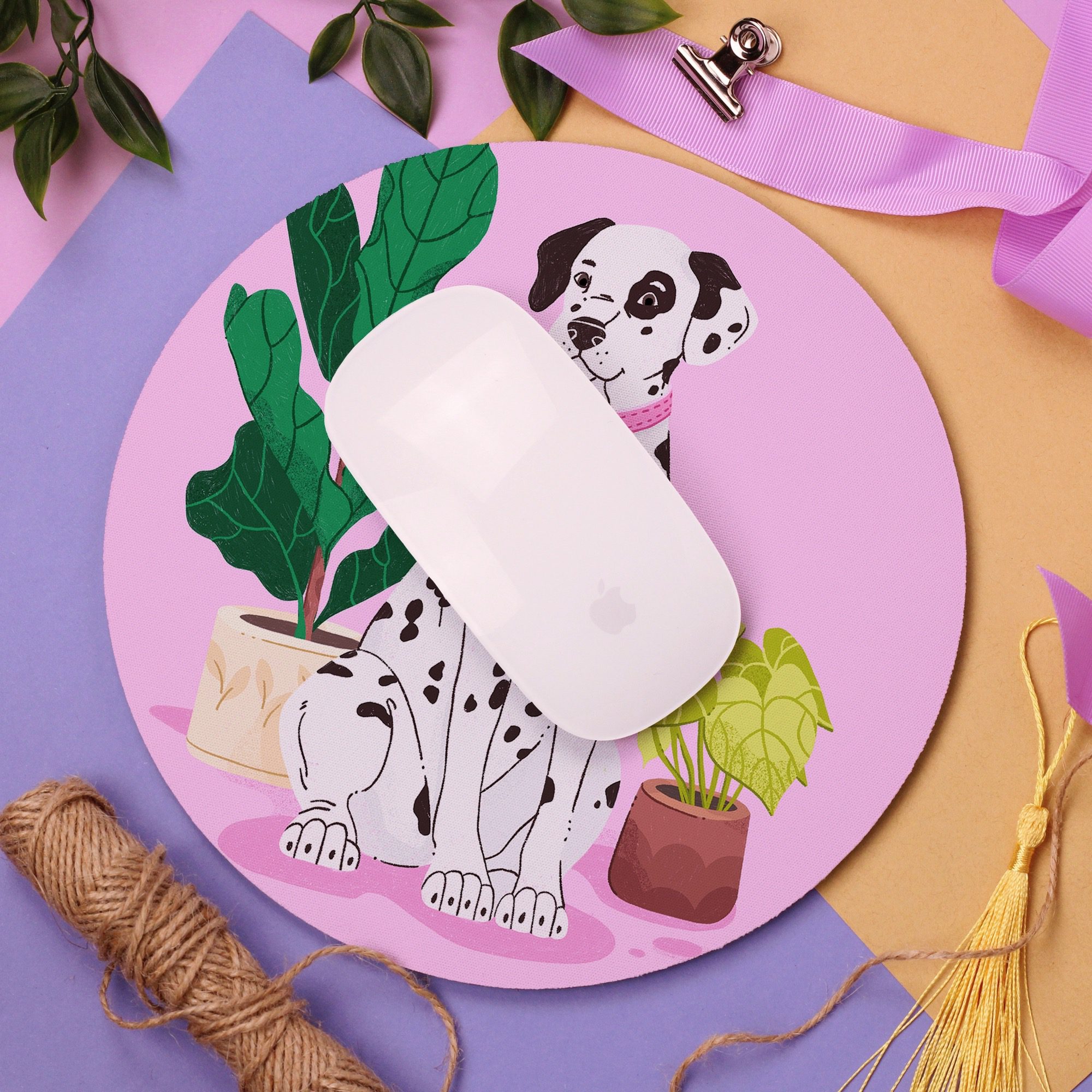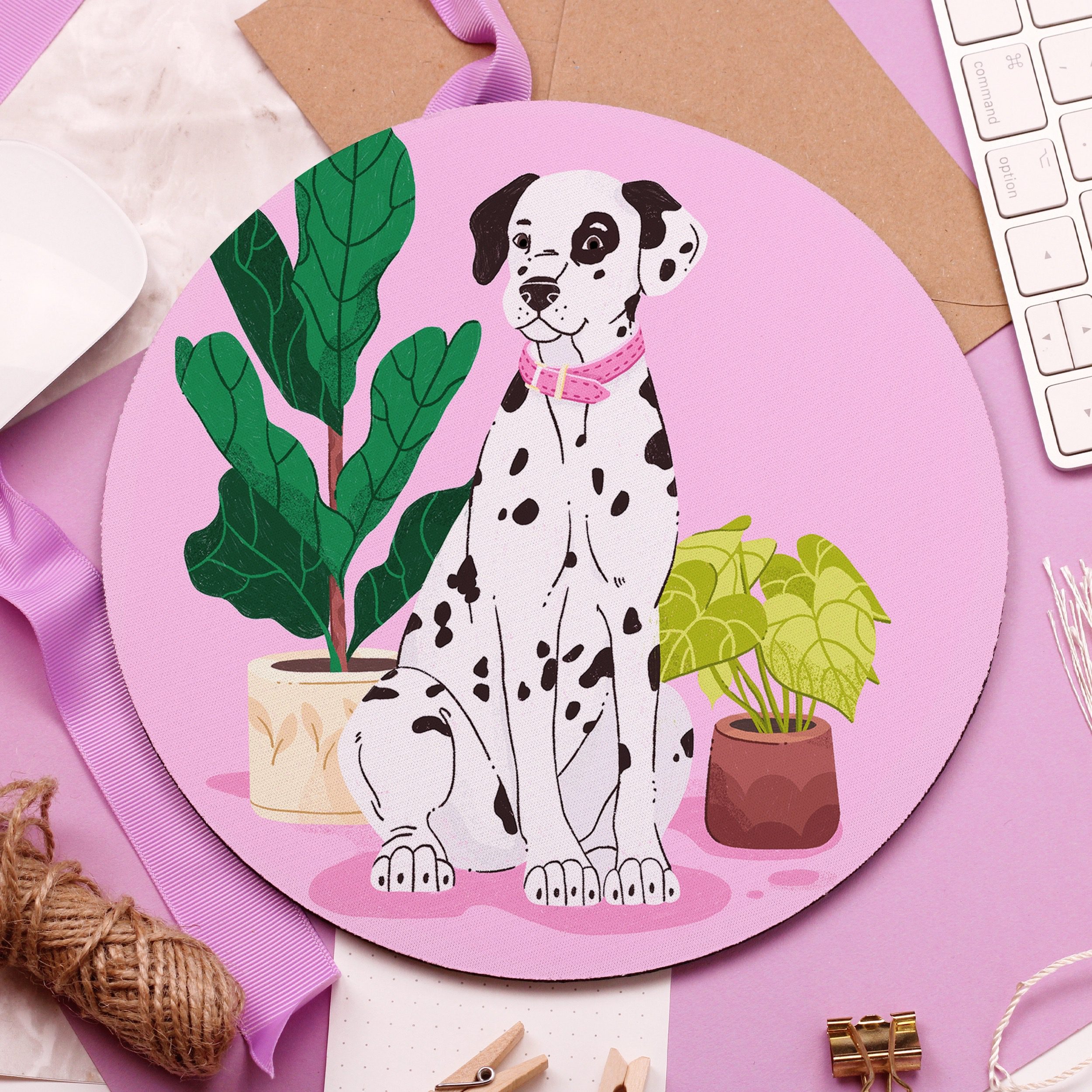 Dalmatian Mouse Pad, Cute Dog Gift, Pink Cute Gift, Plants Art