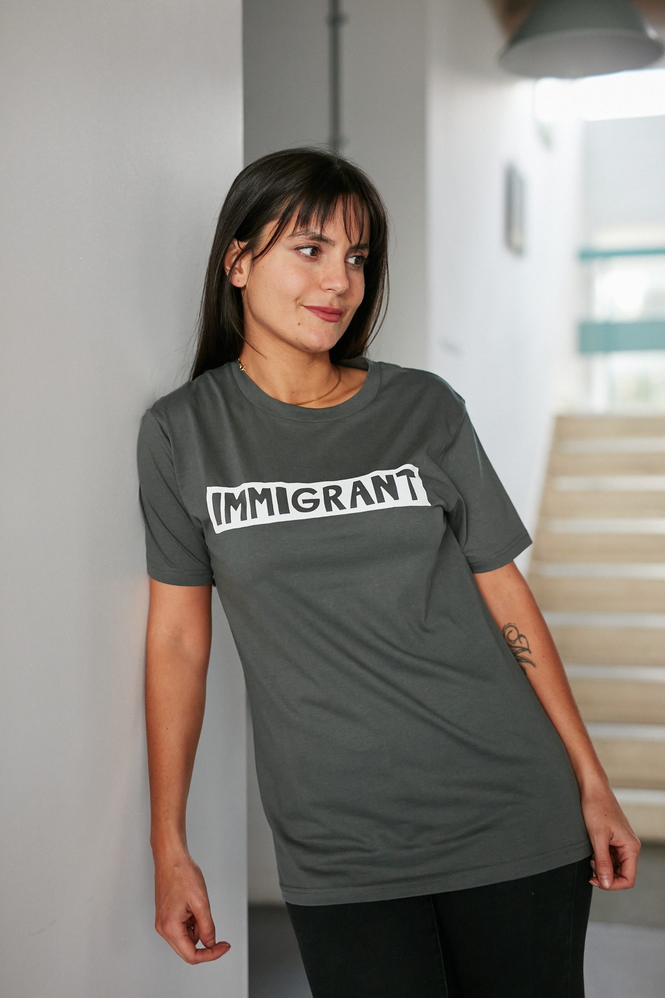 Join the movement for equality and make a powerful statement with the Dark Grey Immigrant T-Shirt – where fashion meets activism.