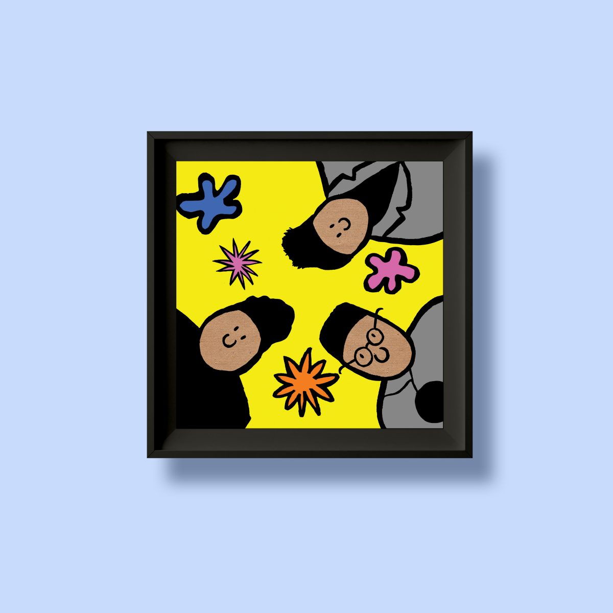 A bold, colourful and original print illustrated and designed in the Pango Tango studio, Brixton. A playful twist on classic album sleeves to hang in your home or as a gift for music lovers of any age.